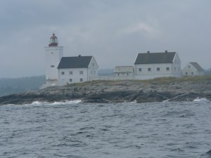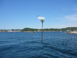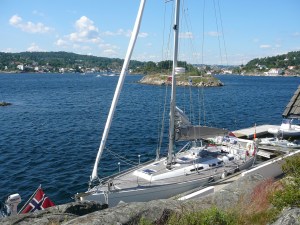 Vandaag, zaterdag, verder gevaren naar Grimstad, na het optrekken van een hardnekkige mist. We durven toch niet goed tussen al die rotsen te varen bij slecht zicht, al hebben we dan radar en een goede plotter.