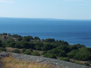 24 juli: van simrishamm naar hano gevaren , voor de wind met genua uitgeboomd. Heerlijk gezeild en op tijd aangekomen voor een wandeling over het kleine eilandhe hano. Prachtig uitzicht vanaf de vuurtoren over de hano bugt met beboste kusten om ons heen. Er zwemmen mensen in de haven, zo warm is het! Wij zitten lekker aan de borrel met koud bier en witte wijn. De veerboot komt eraan, even kijken hoe dat gaat in dit piepkleine haventje”