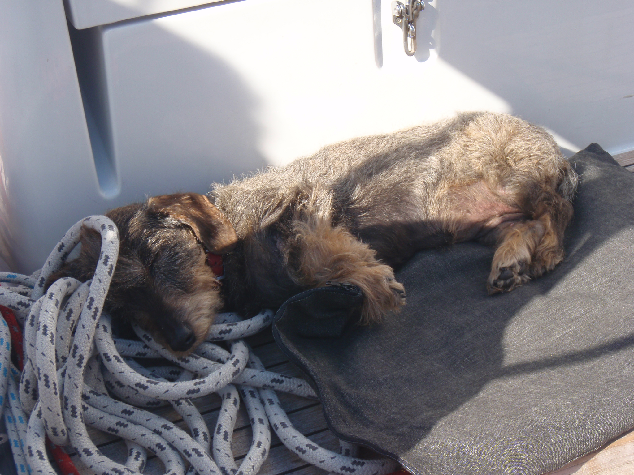 De volgende ochtend lagen er 4 verse broodjes in de kuip; cadeautje van de havenmeester! Daarna op naar Stavern, een schitterende zeildag over zee met de wind bijna van achteren en alleen maar zon. Stavern is druk, wat vergane glorie en erg duur. Je ligt bovendien onrustig. We vertrekken snel weer!