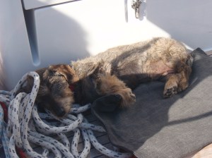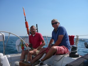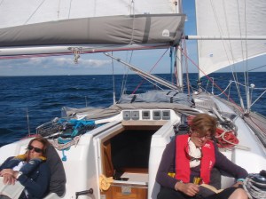 Opnieuw een mooie zeildag, 30 mijl met ruime wind. Eerst 10-15 knopen, op het laatst 20-25 knopen. we liepen over de 10 knopen maar besloten toch maar te reven….