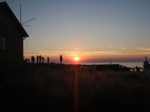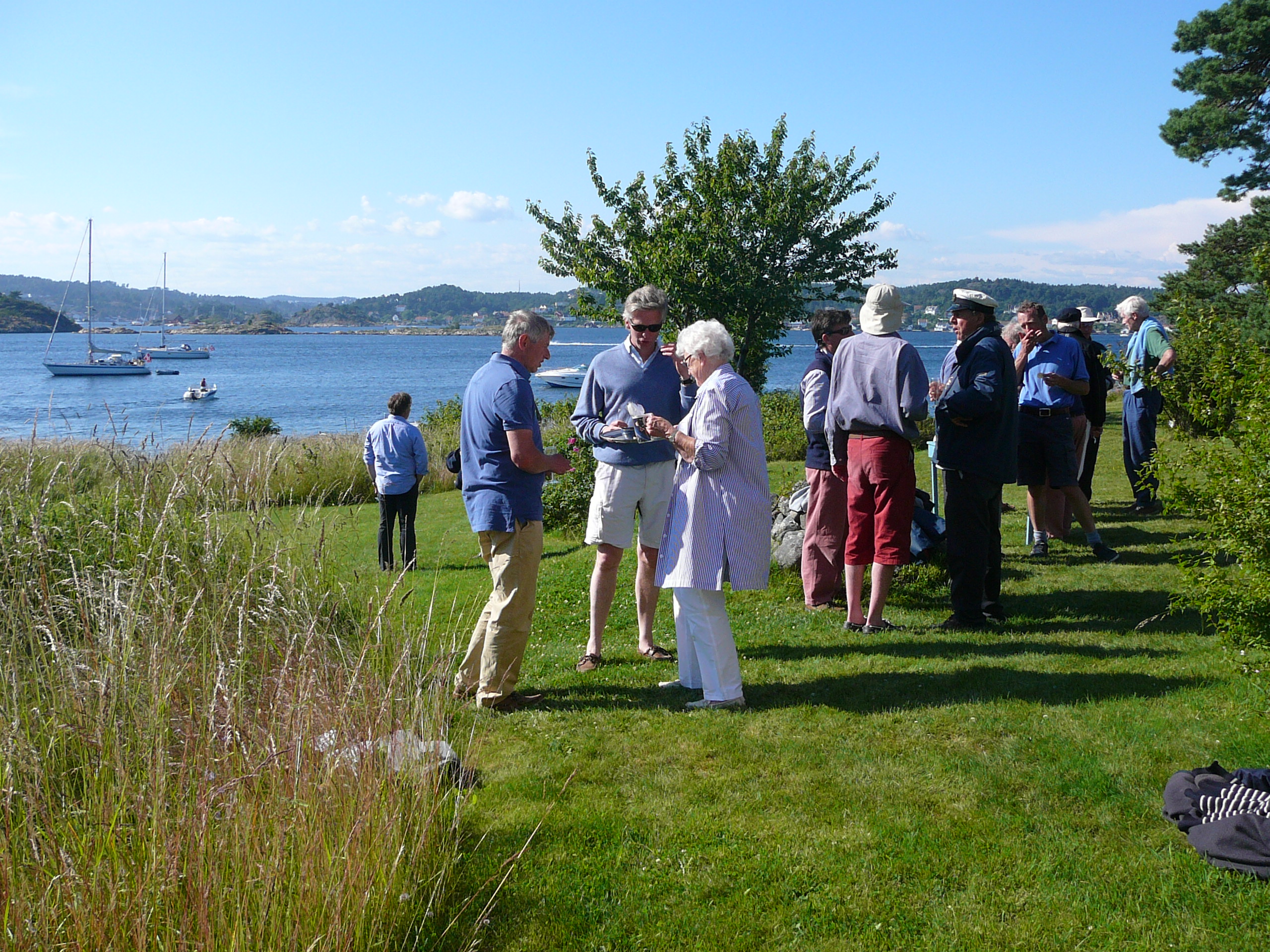 Bij Arendal ontmoeten we de Hestia met aan boord o.a. Frank en Dries. We sluiten aan bij een geweldig onthaal bij Oscar, een Noor met een mooi vakantiehuis op het eiland Merdö, net buiten Arendal. Daarna een gezellige BBQ in op het eiland van de jachtclub waar we met zijn allen lagen. Op commando (kanonschot) allemaal om 21:00 de vlag eraf en om 08:00 uur de vlag er weer op.