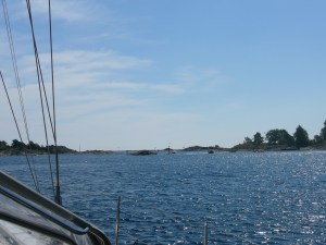 17 juli: vandaag naar Donsö gevaren, 10 mijl ten Z van Göteborg. Vandaag en de dagen hiervoor veel westenwind, maar wel mooi zonnig, jammer genoeg max 17-19 graden. Vanwege de wind door de scheren gevaren en niet veel buitenom. 50% zeilend, 50% op de motor vanwege smalle doorgangen en luwtes achter eilanden.