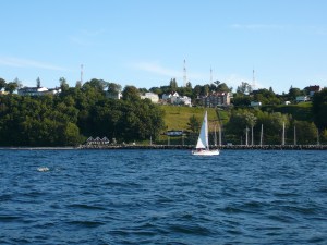 Van Laboe voeren we op 12 september 4 mijl naar Kiel, de haven van de Kieler Yacht Club, ons welbekend van o.a. een bezoekje met de Slam in 2009 samen met de familie Daarnhouwer en de Savannah Blue. We voeren natuurlijk in de enige regenbui van de hele dag met 27 knopen wind!