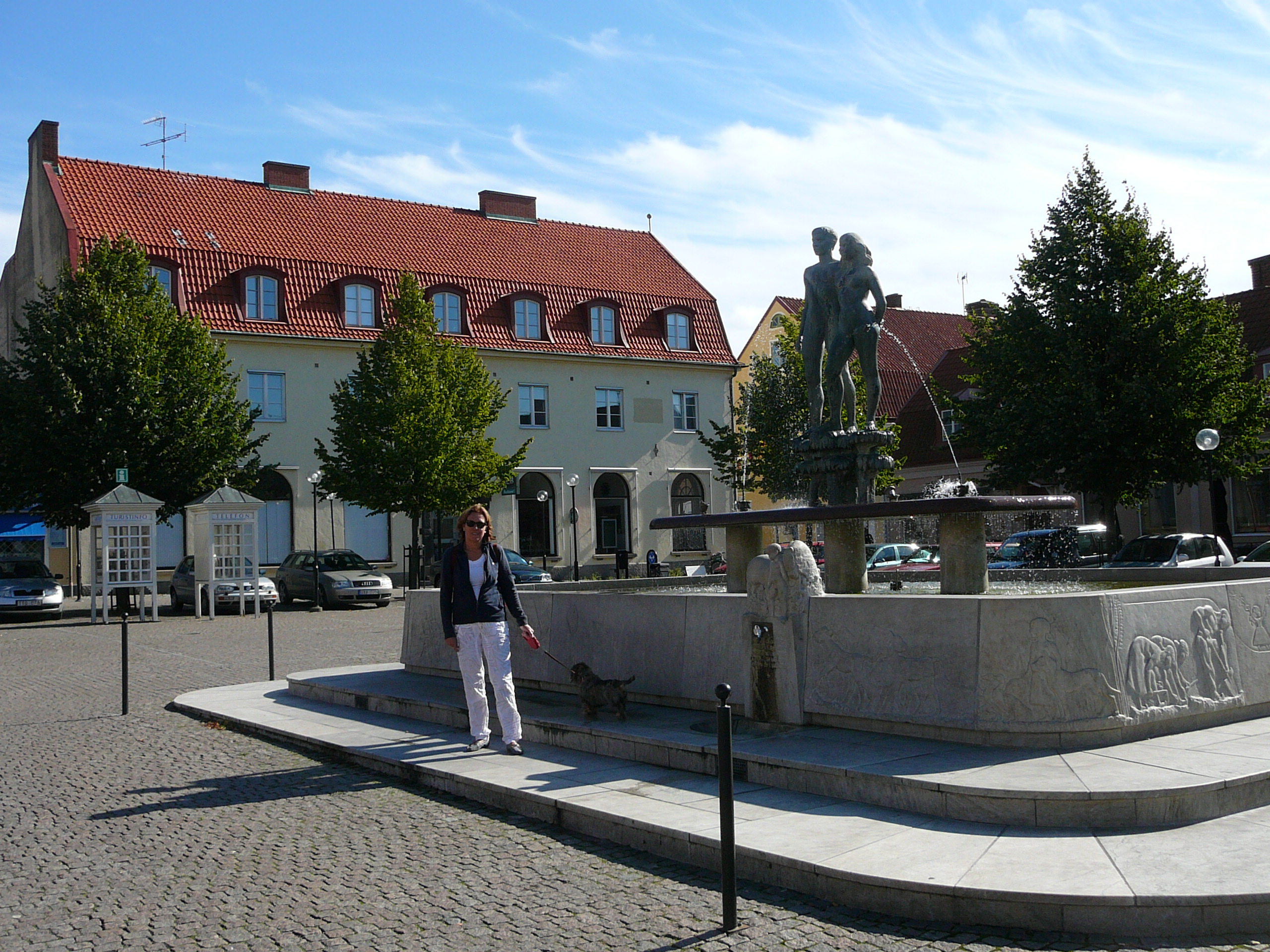 Gisteren voeren we ook al een lekker halvewinds rak (toen de wind Noord was) van Sandhamn naar Sölvesborg, 55 mijl. In Sölvesborg lagen we zo’n beetje in het stadsparkje aan de haven/rivier en waren we met een Zweed de enige bewoonde boot. Heerlijk uit eten geweest bij de Trattoria, een echte Italiaan met veel aanloop; duidelijk de beste tent van het stadje. Hun lijfspreuk: Een dag zonder wijn is als een dag zonder zon. Klopt wel met ons, de Grand Soleil en onze nog steeds toereikende wijnvoorraad! Ze vroegen wat wij nu als buitenlanders daar deden want kennelijk is het geen toeristenbestemming.