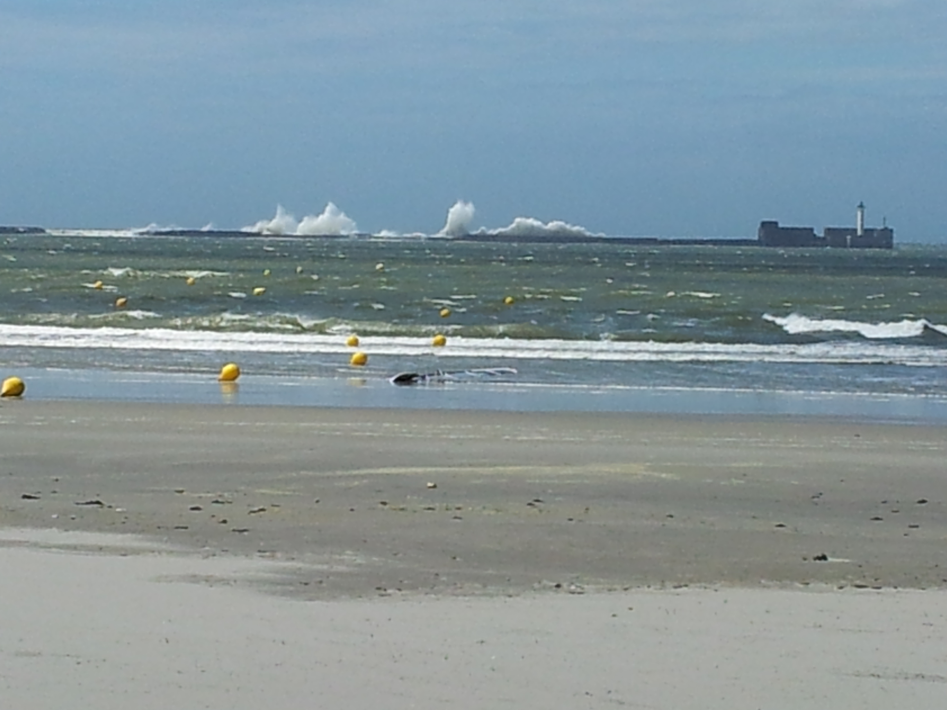 23 juni: we gingen slapen op een flink schommelende Aurora en we werden weer wakker met dezelfde effecten van de wind. 20-25 knopen achter de beschutting van de haven en industriegebouwen. Na het ontbijt verse tarbotines gekocht aan de haven (op zondag is er vis- en andere markt!). We zijn gaan fietsen langs de kust (steil omhoog met gelukkig de harde wind in de rug) en zagen de golven over de pier van de havenmond slaan. Geen boot vaart uit of komt binnen vandaag.