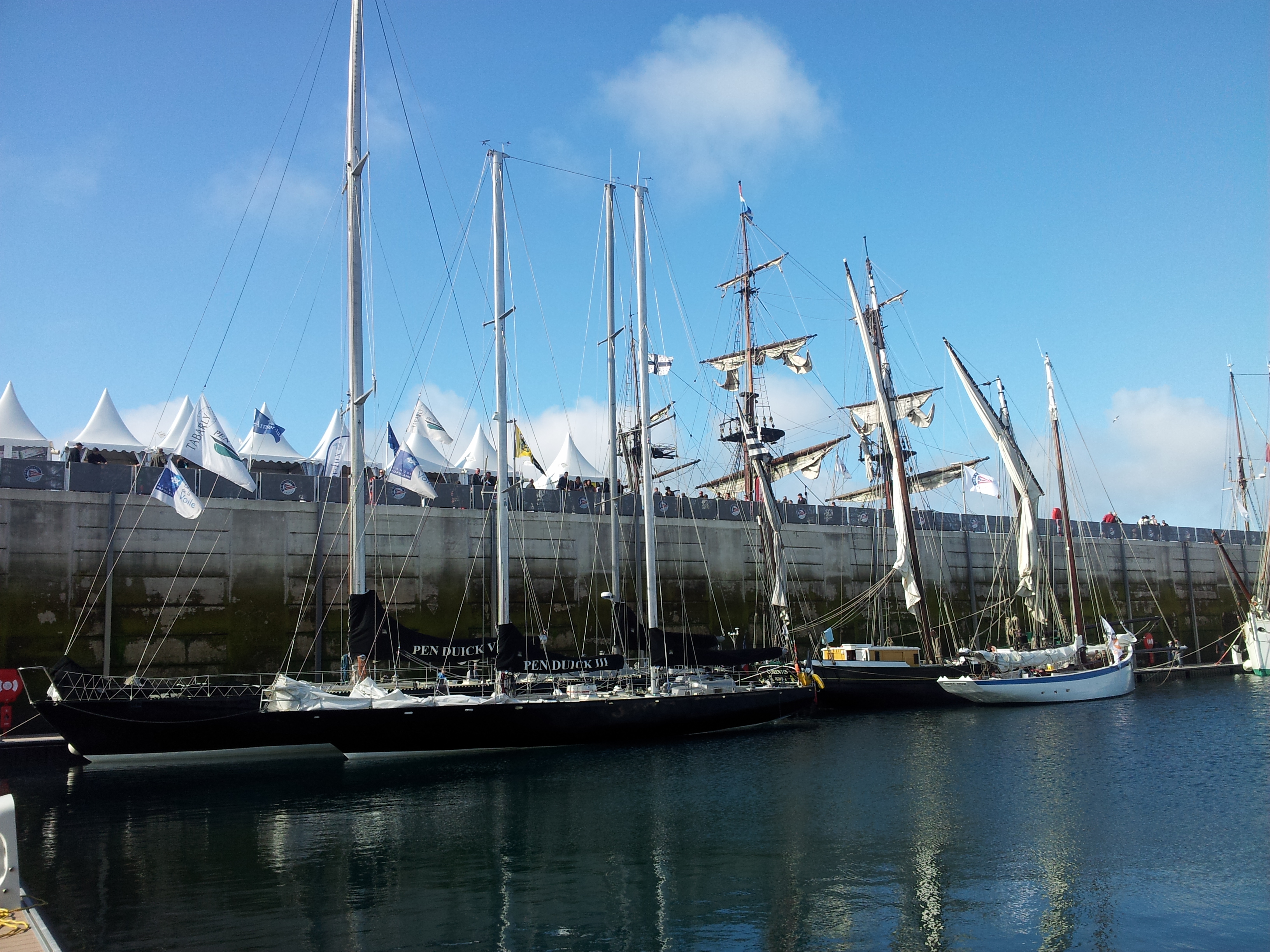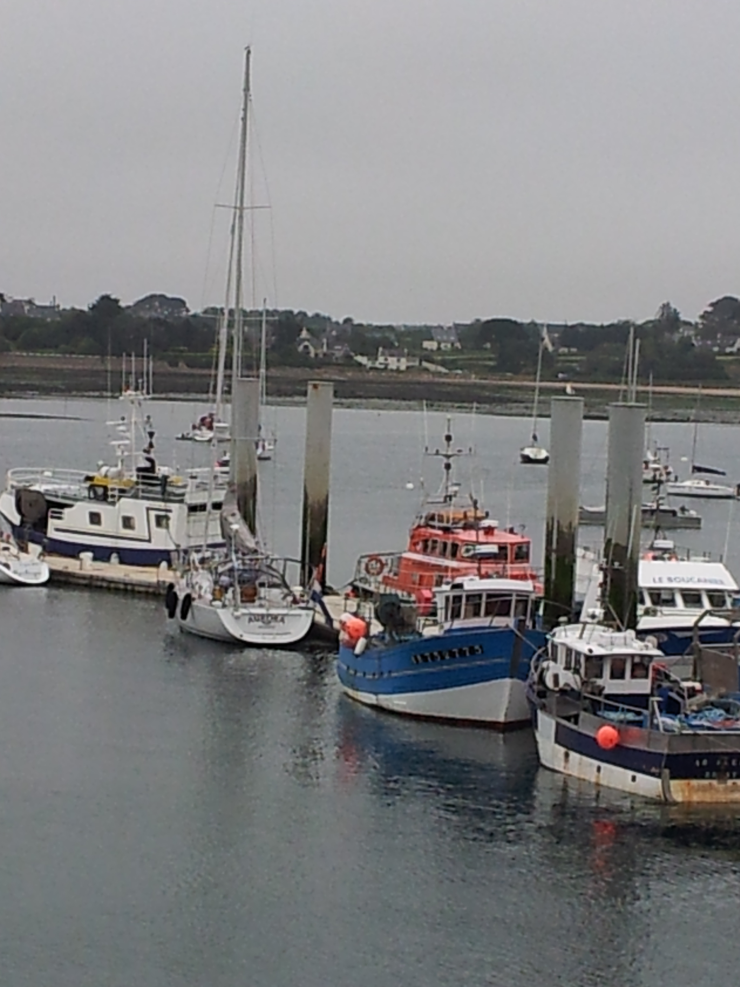 De haven van Roscoff, waar de veerboot naar Ile de Batz vertrekt, valt helemaal droog (zie filmpje) en het is dus een raadsel hoe we hier dan toch terecht kunnen. Maar : Sinds 2012 is hier een mooie nieuwe marina op diep water gemaakt naast de veerhaven. Veel mensen en activiteit. Veel oude zeilschepen liggen er in de haven; ook de twee Pen Duicks van Eric Tabarly, die we in 2010 ook in Marseille tegenkwamen.