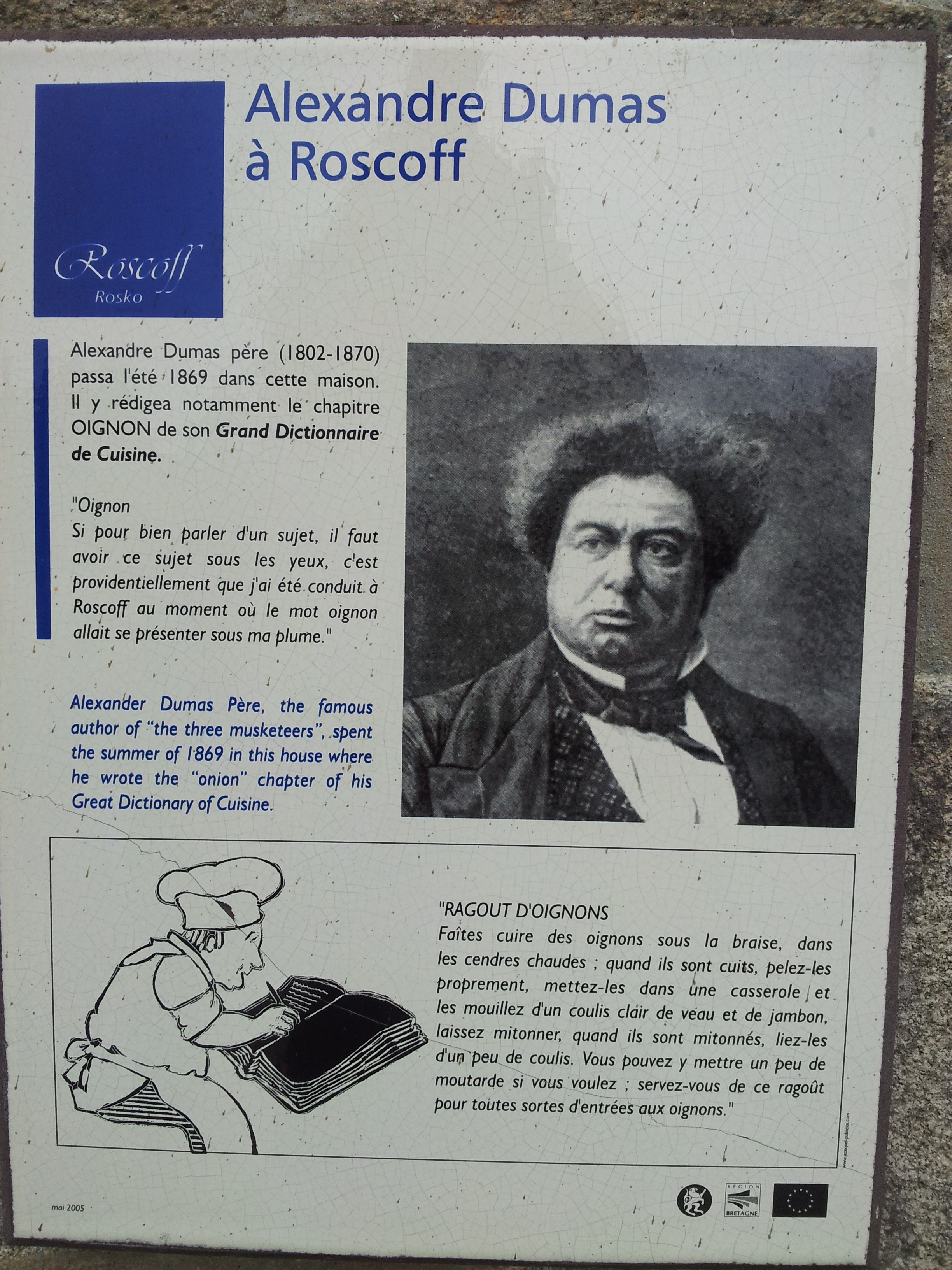 Dit recept vonden we op een huis in Roscoff. Dumas verbleef hier enige tijd.