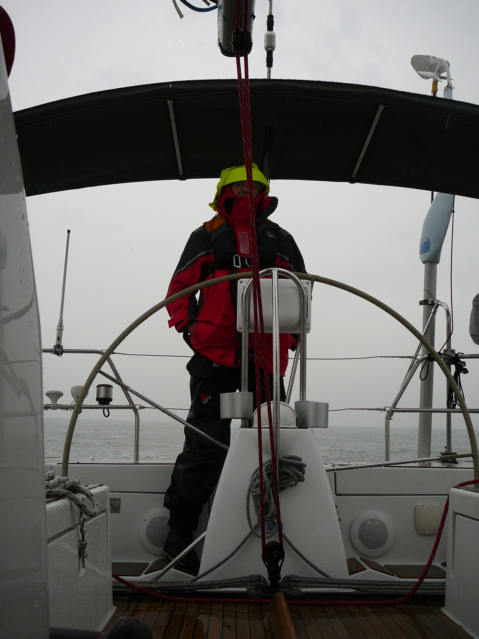 Vandaag 50 mijl heerlijk gezeild, kruisen met 2 korte en 2 heel lange slagen. De zon deed goed zijn best maar het was nog wel koud op het water, dus zeilpakken aan.