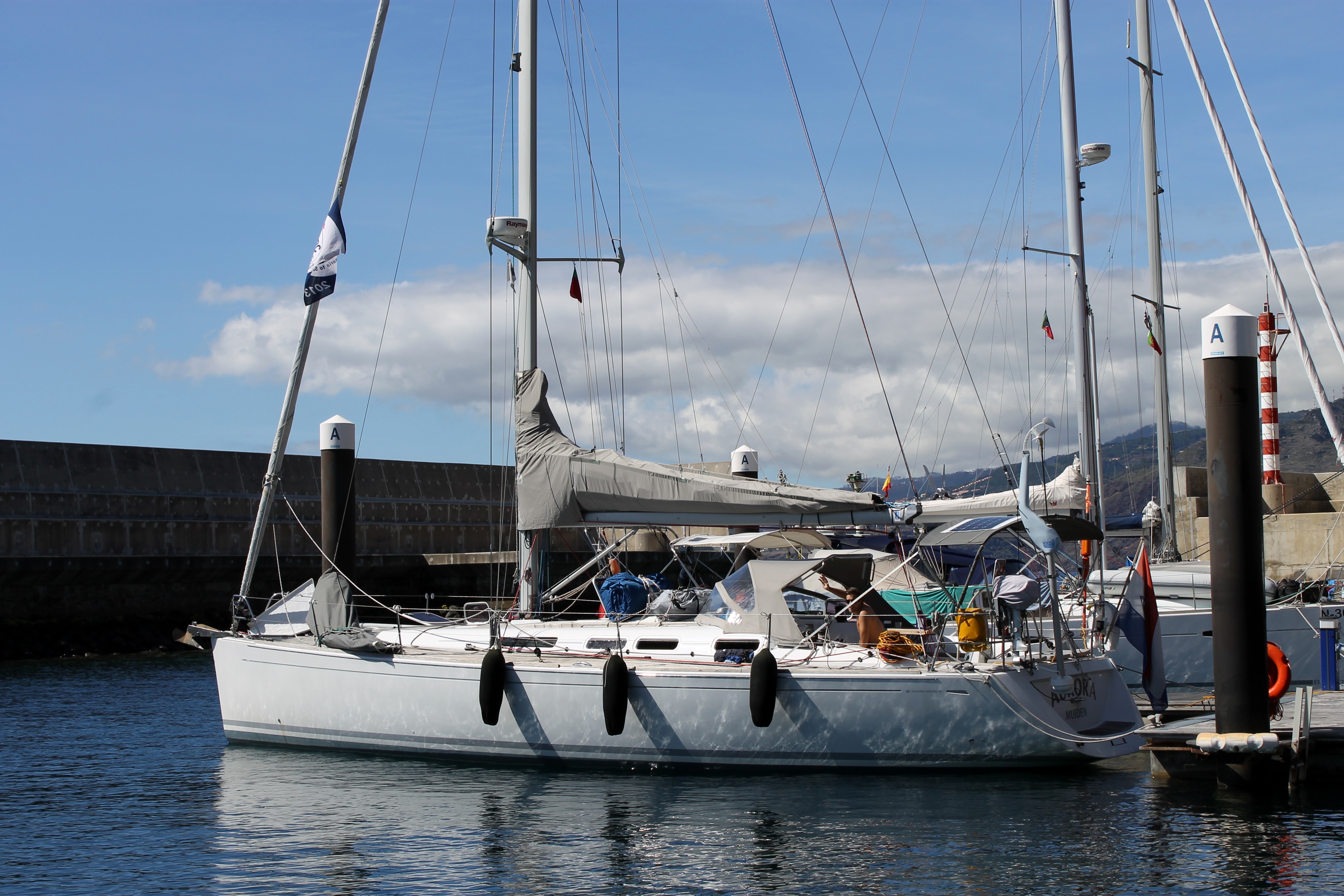 Frederique en Jeroen stonden na het ontbijt al op de steiger want zij gaan Maurits vanaf hier aflossen. We varen met hen in hun laatste week van het zorgeloze studentenbestaan verder naar de Canarische eilanden. Pieter blijft ook aan boord .