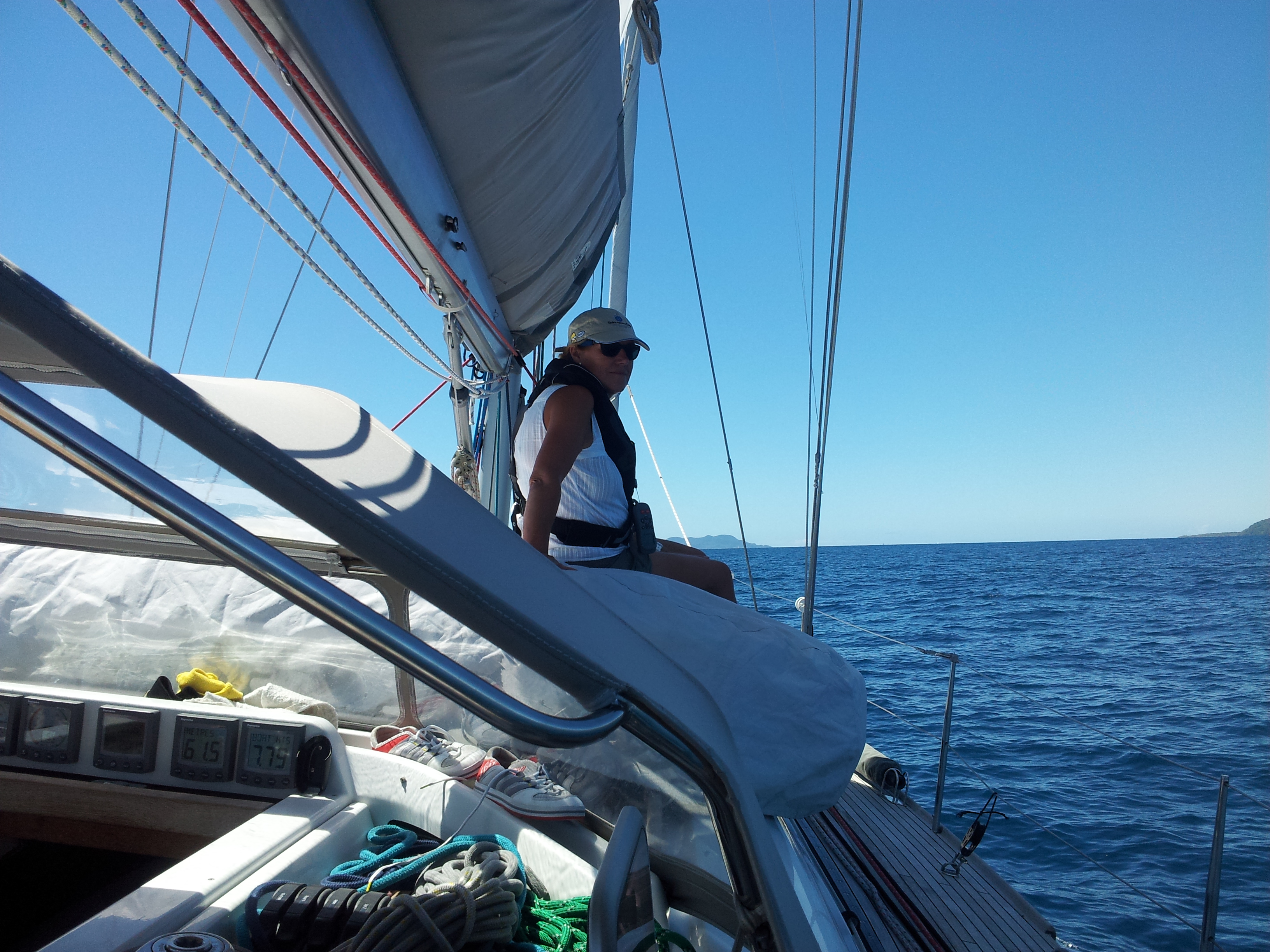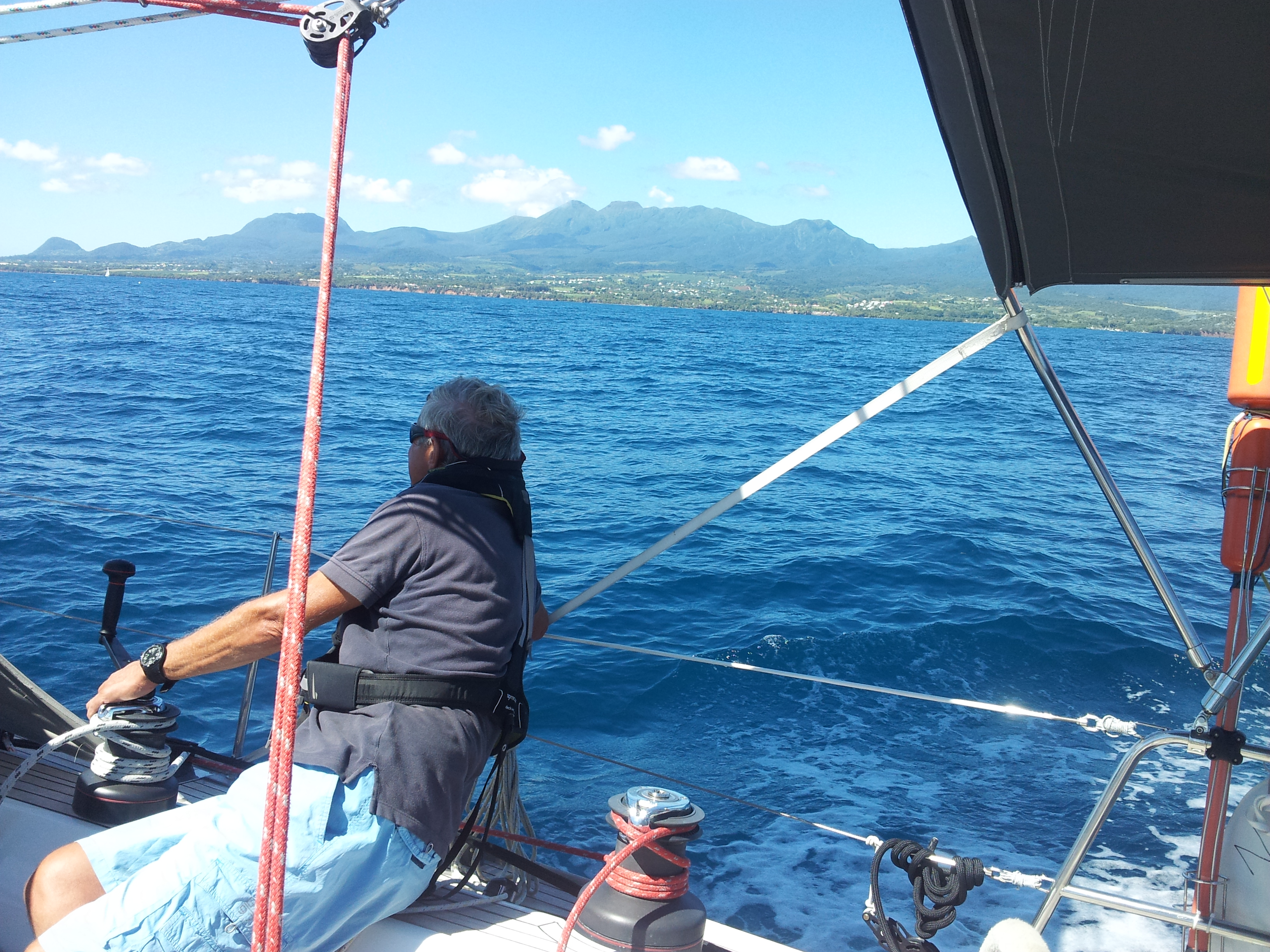 11 maart: We varen naar Deshaies vanaf Pointe a Pitre. Dat is 50 mijl om de westkant van Guadeloupe heen. Heerlijk met een schoon onderwaterschip. We varen eindelijk weer met gemak boven de 7 knopen met 10 knopen ware wind met de kleine genua!