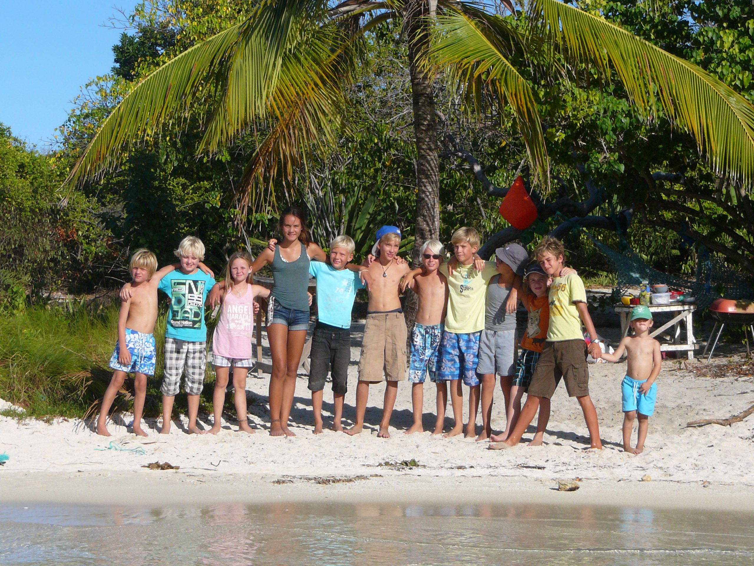 We liggen hier met Starship, Heckogecko en Capricorn die we van de ARC kennen en de Maris en Maranne die we in Bequia al eerder tegenkwamen. Op al deze schepen zijn kinderen dus de ankerplek is een speeltuin voor dinghies en surfboards. Gezellige boel dus.