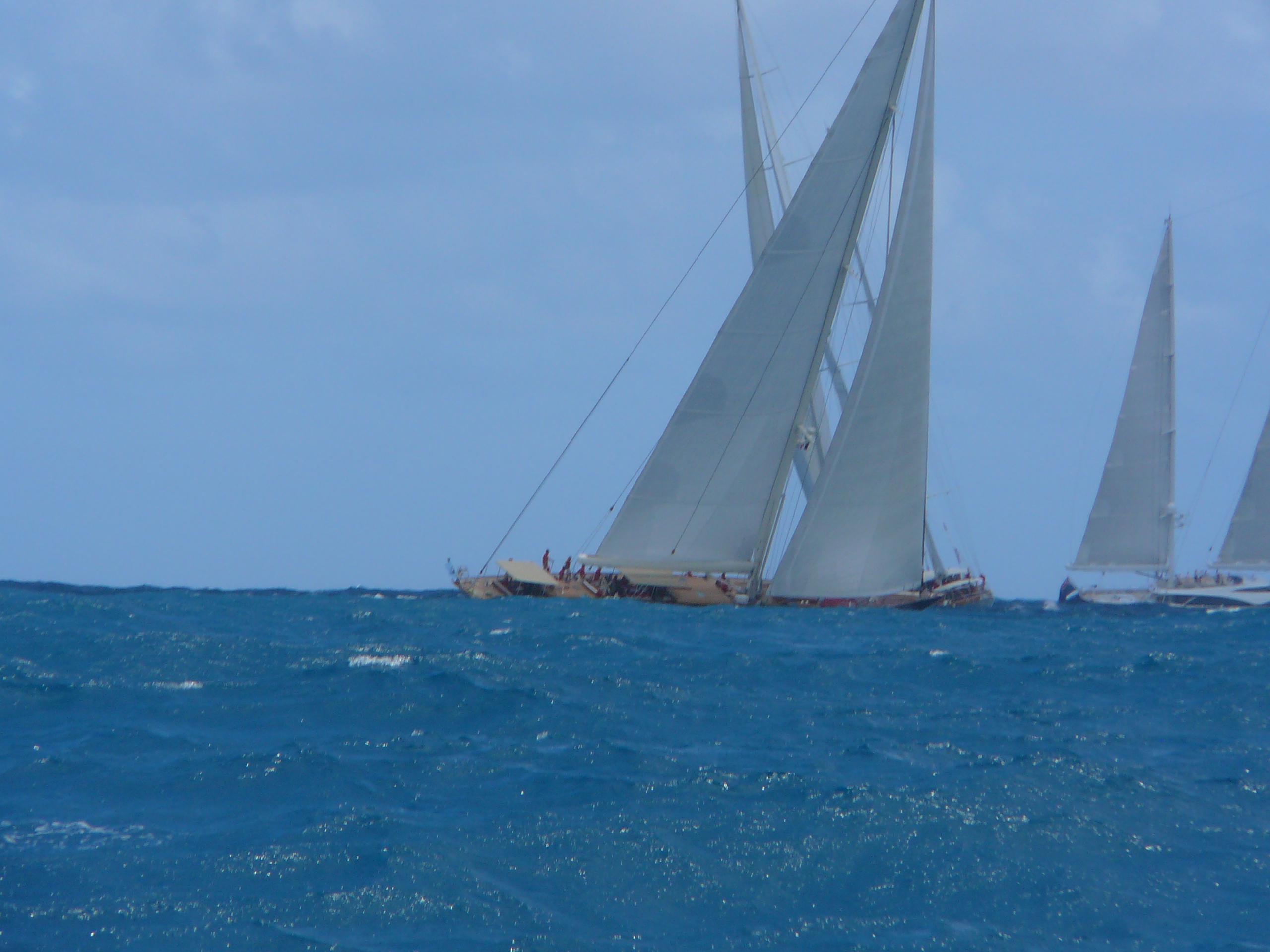Na 2 dagen op St Barths zeilden we prachtig halve wind naar Sint Martin en voeren en passant tegen het wedstrijdveld in (aan lijzijde om beleefd te blijven). Mooie foto’s gemaakt o.a. van Rainbow, de mooiste J die er is!