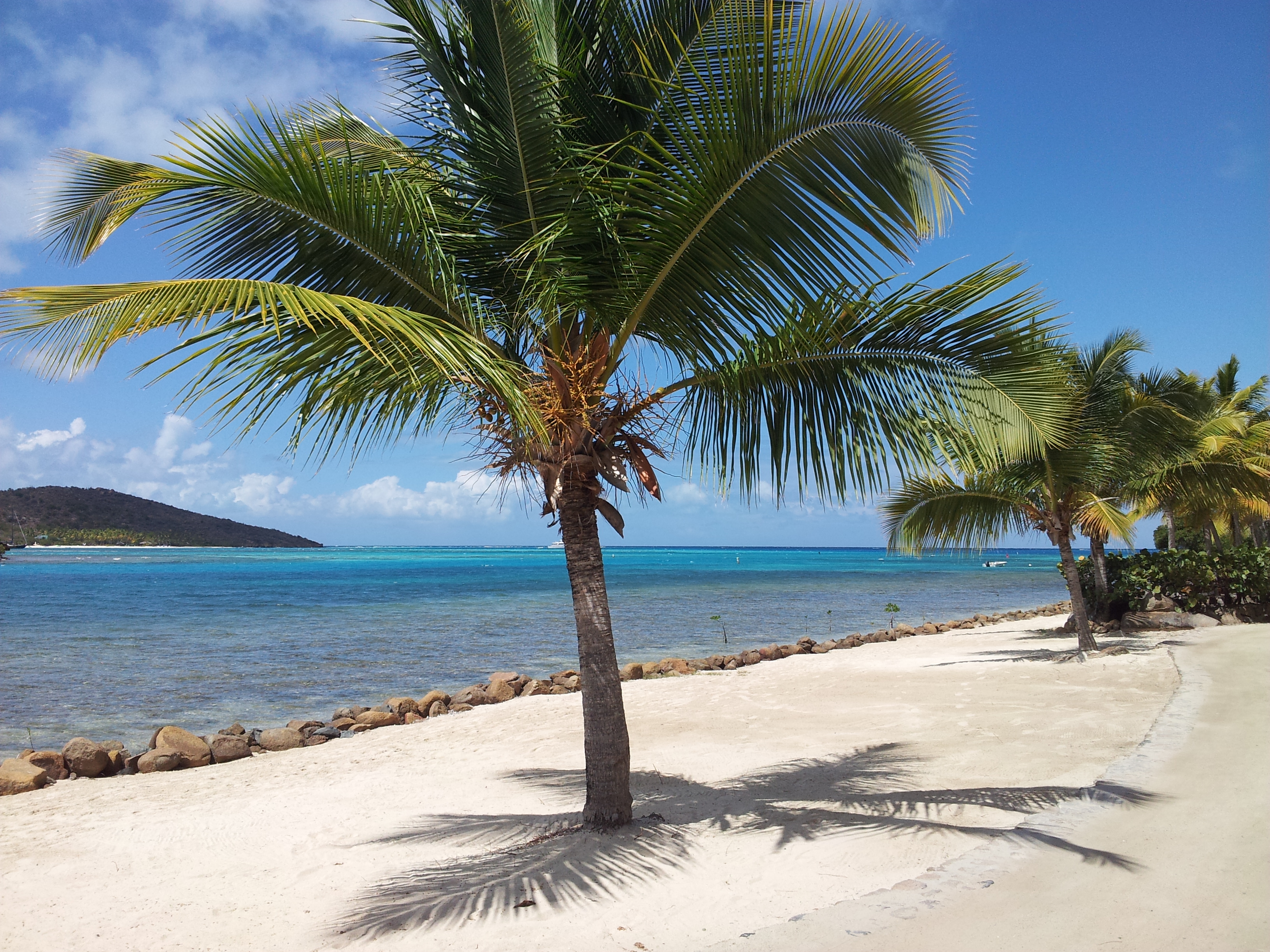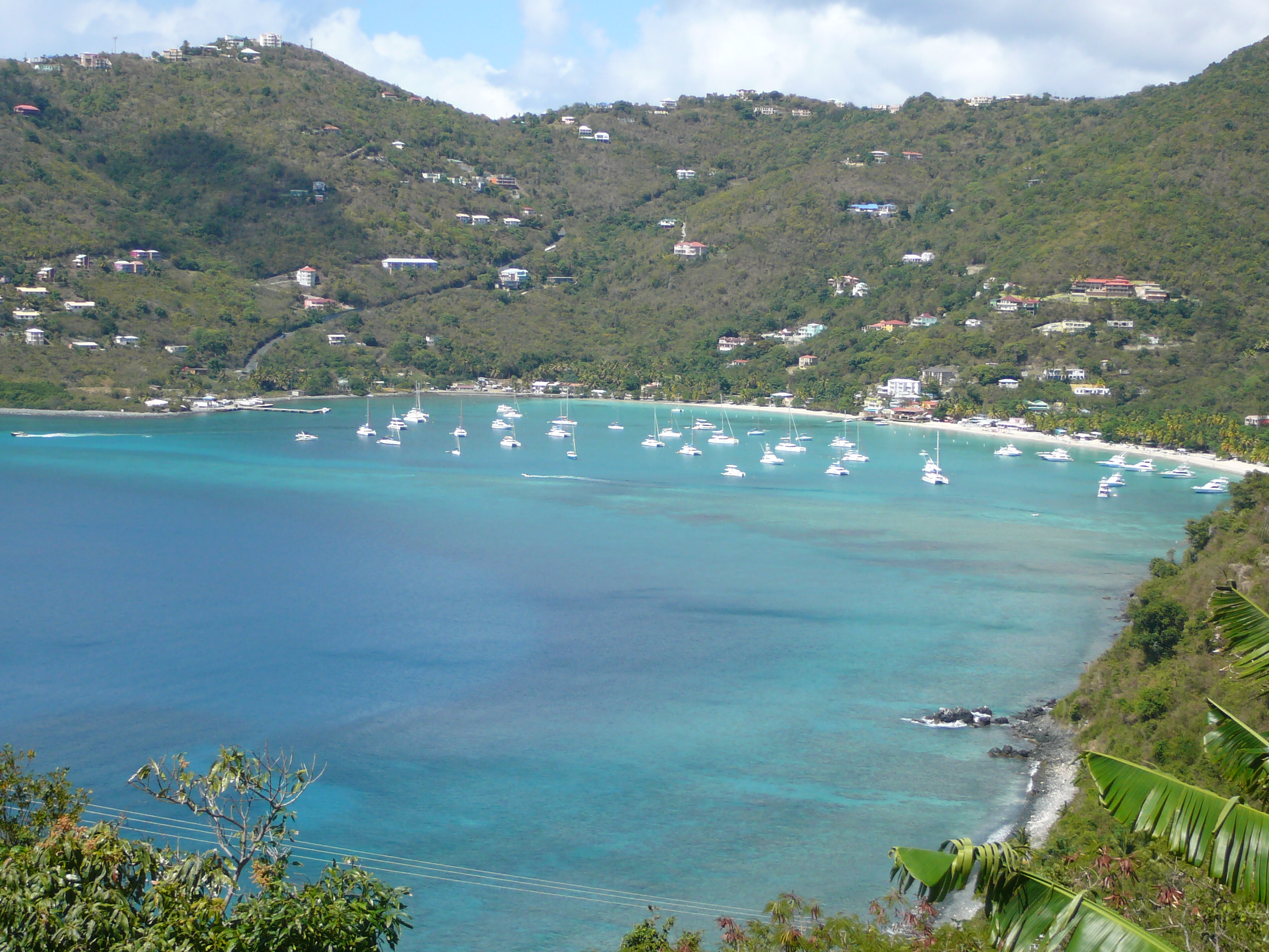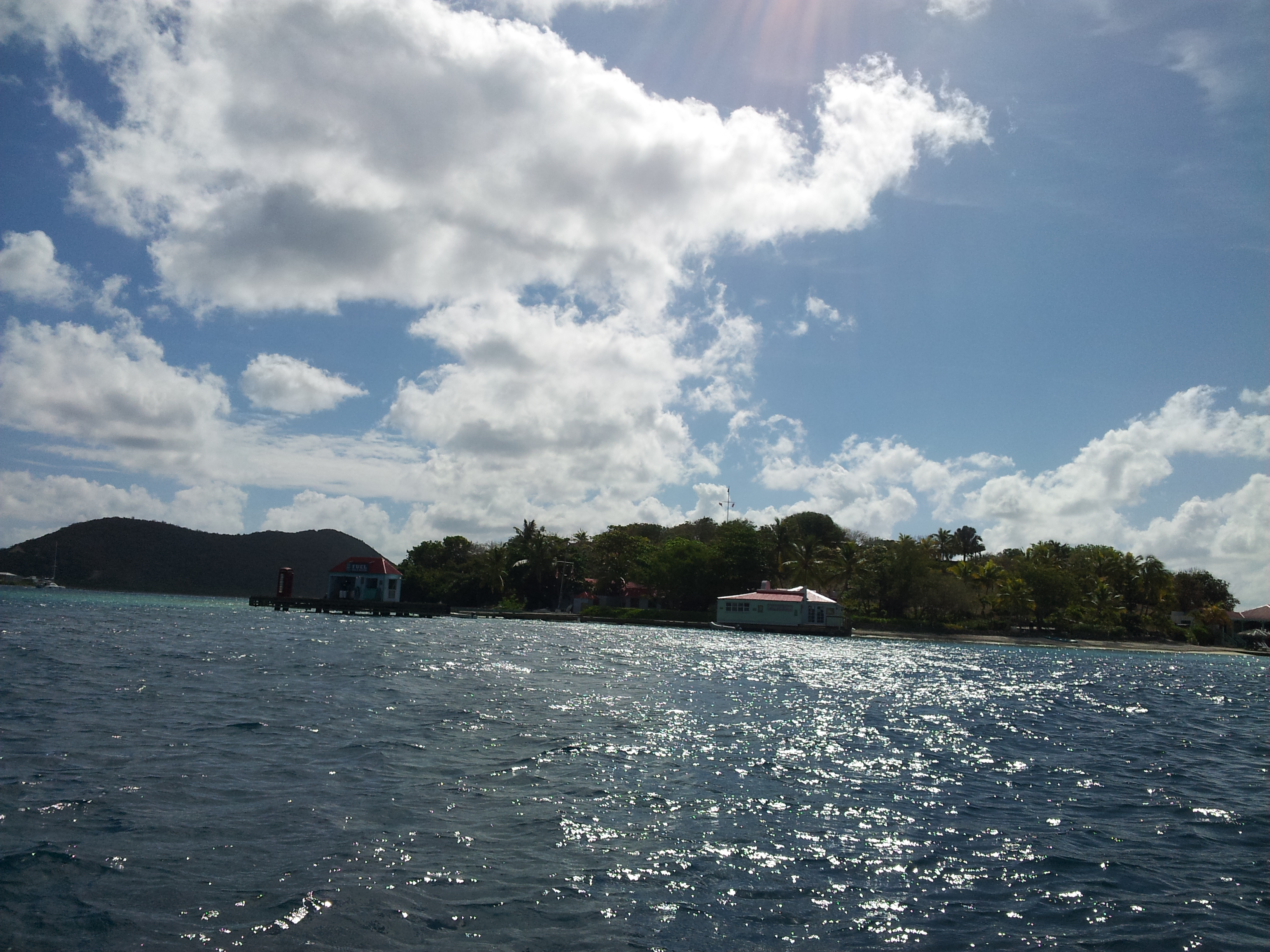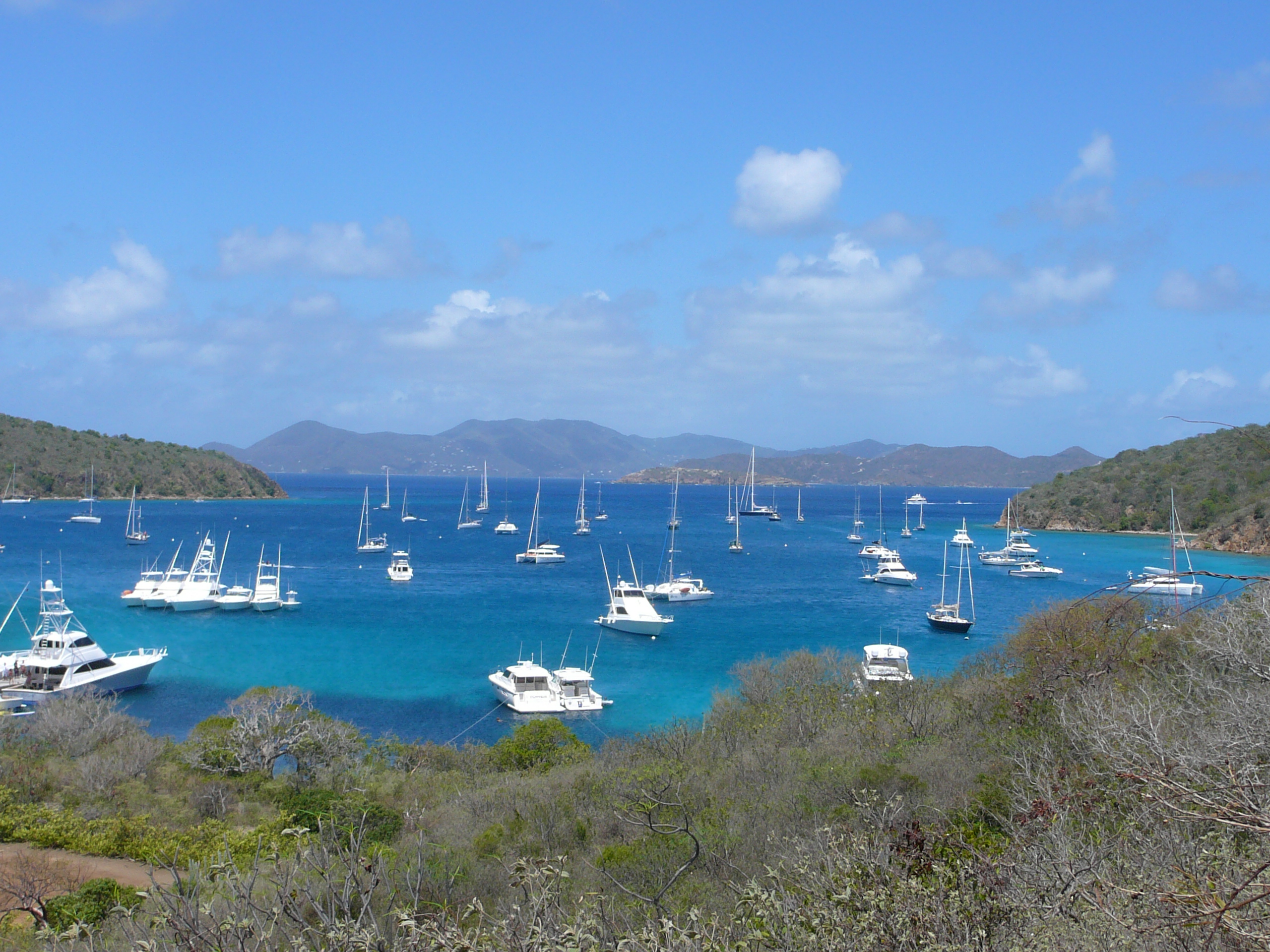 Toen het licht werd kwamen we in diep water en ging de genua erbij. We voeren de hele dag ruime wind naar Virgin Gorda waar we om 15:30 aankwamen. 82 mijl in 11 uur, prima met een conservatieve zeilvoering met zijn tweetjes.