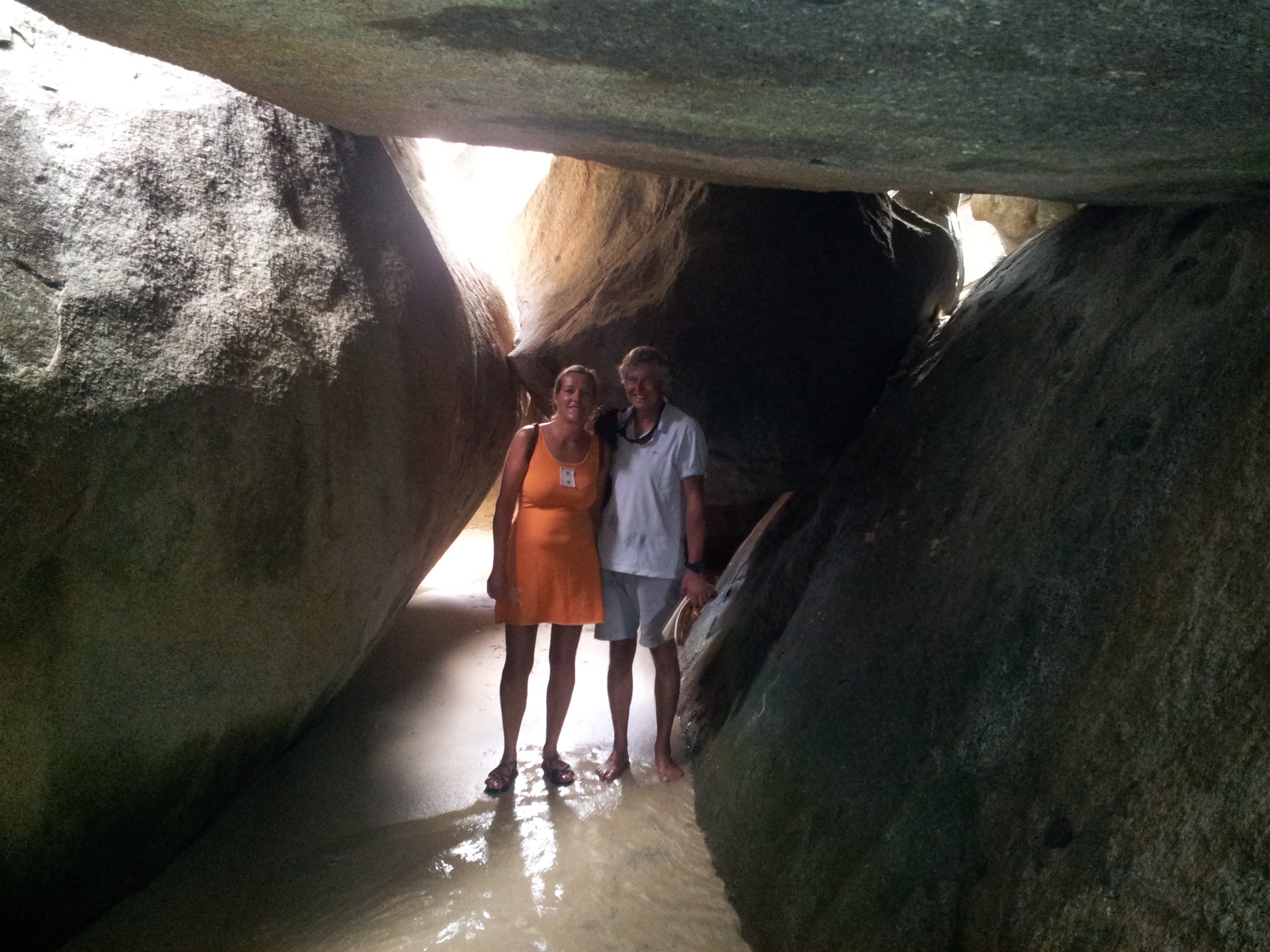 11 april hebben we vanaf Spanish Town wel een heel mooi uitstapje per taxi naar the Baths gemaakt met een aantal van de bekende groep andere boten (Maranne, Ikiro, Starship). Taxi’s zijn hier pick-up trucks met een huif en banken achterin de laadbak….The Baths is een fraaie rotsformatie aan de ZW-kant van Virgin Gorda waar je vroeg moet zijn. Om 08:15 waren we de eerste bezoekers op de trail en daarna op het snorkelstrand waar dus nog veel mooie vissen te zien waren. Na ons kwamen de hordes Amerikanen van een cruiseschip en waren alle vissen waarschijnlijk wel gevlucht.