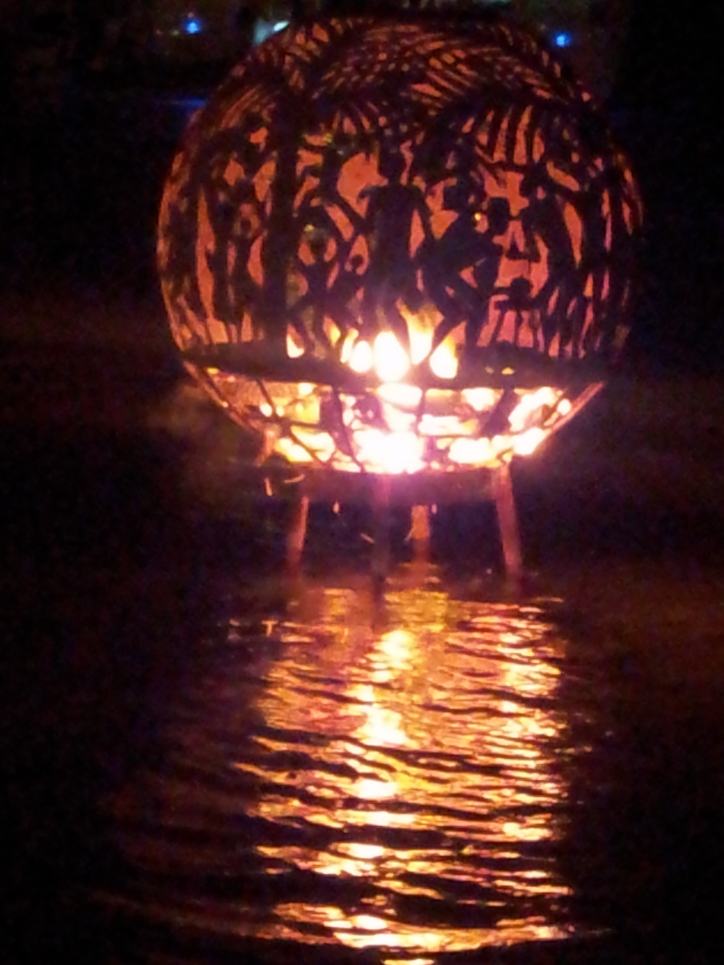 Elke maand is er full moon party en daarom zijn we hier op 15 april met veel bevriende boten en bemanningen. Eten voor $12,50 p.p. een prima bbq met ribs en grilled mahimahi en kijken dan onze ogen uit naar vuren in het water en naar steltlopende dansers. We zijn pas om 23:30 terug op de boot die aan een mooring ligt in een overvolle baai.