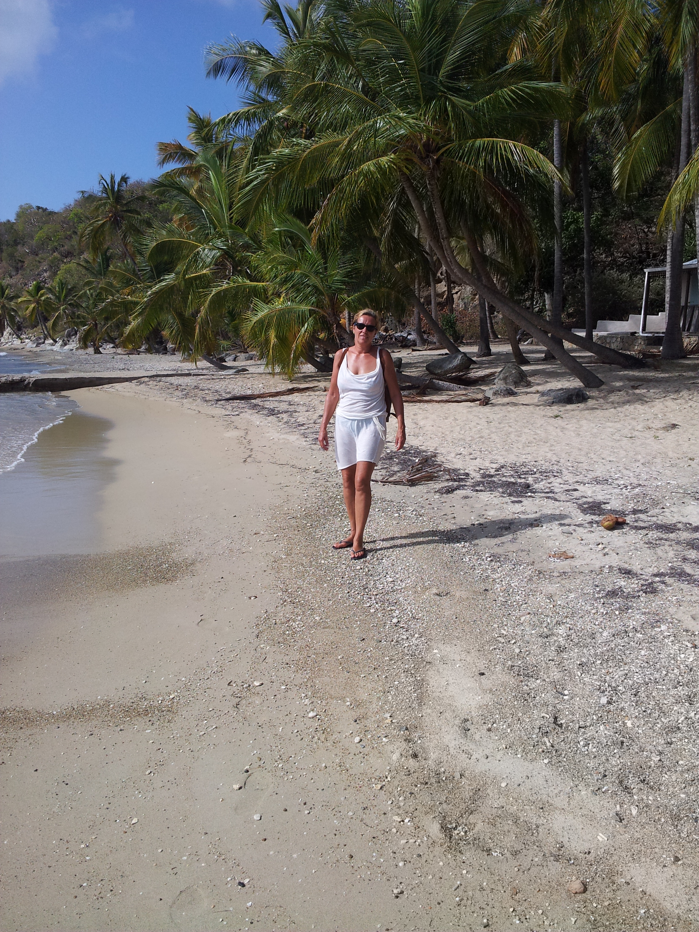 Hierna voeren we wel bijna 6 mijl naar Marina Cay, een heel klein eilandje met een rif ernaast waarachter je mooi beschut ligt. Op het eilandje is een hotel met 8 kamers, een strandrestaurant en een Pusser’s kleding- en rumwinkel. We vermaken ons dus wel even hier. Dit bounty-eilandje is in 1937 door een jong echtpaar (Robb en Rodie White) gekocht van de Engelse staat voor 60 pond en daarna hebben ze hier 3 jaar hun huwelijksreis doorgebracht en zelf een huis gebouwd en geleefd van de zee en de grond waarop ze e.e.a. wisten te verbouwen. Daar is een film van die je op youtube kunt vinden (“our virgin island”).
