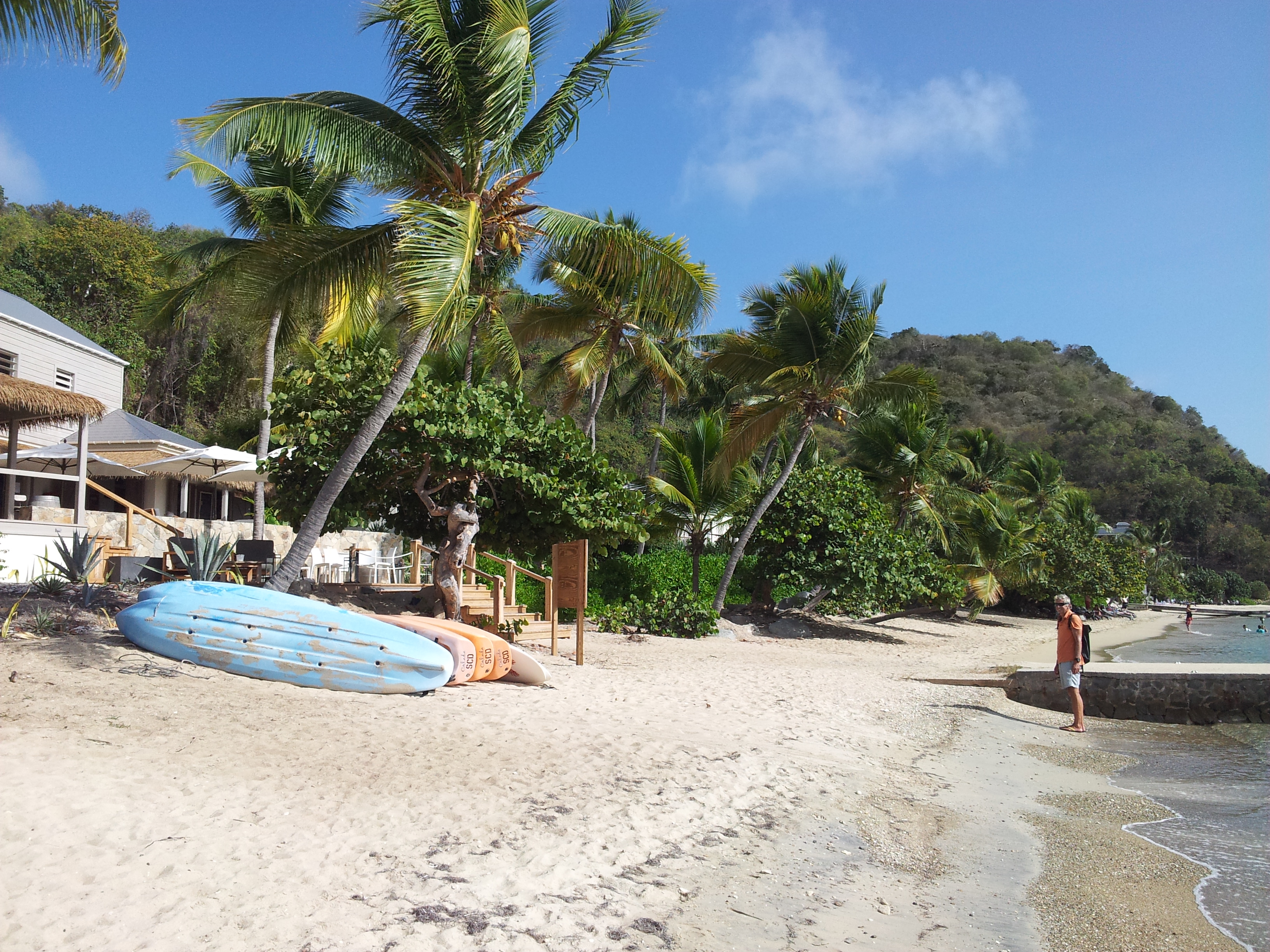 Cooper Island ligt heel rustig en er is eigenljk alleen een beach club met restaurant en 4 hotelvilla’s. Mooie snorkelplek ook net om de hoek waar je de oceaandeining al ziet (maar die is heel rustig nu).