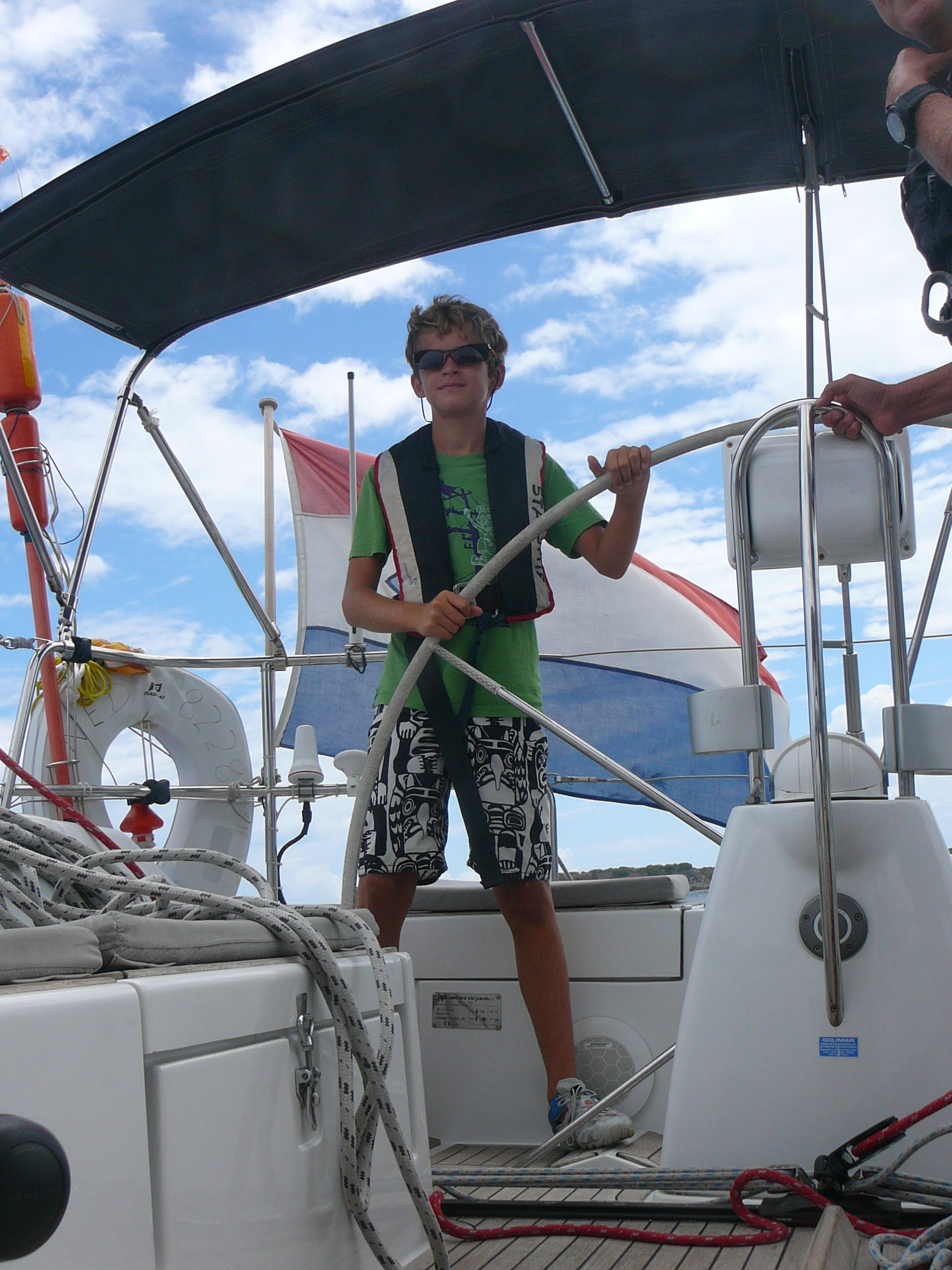 Hierna vertelden zijn ouders, Ushi en Dietmar, dat hij wel kritischer was aan boord bij hen. Op de volgende oversteek (naar Virgin Gorda) hadden ze heel wat te horen gekregen over de zeiltrim van Starship…. ze gaan nu wel een stuk harder dan hiervoor, dus het hele gezin heeft er lol in.
