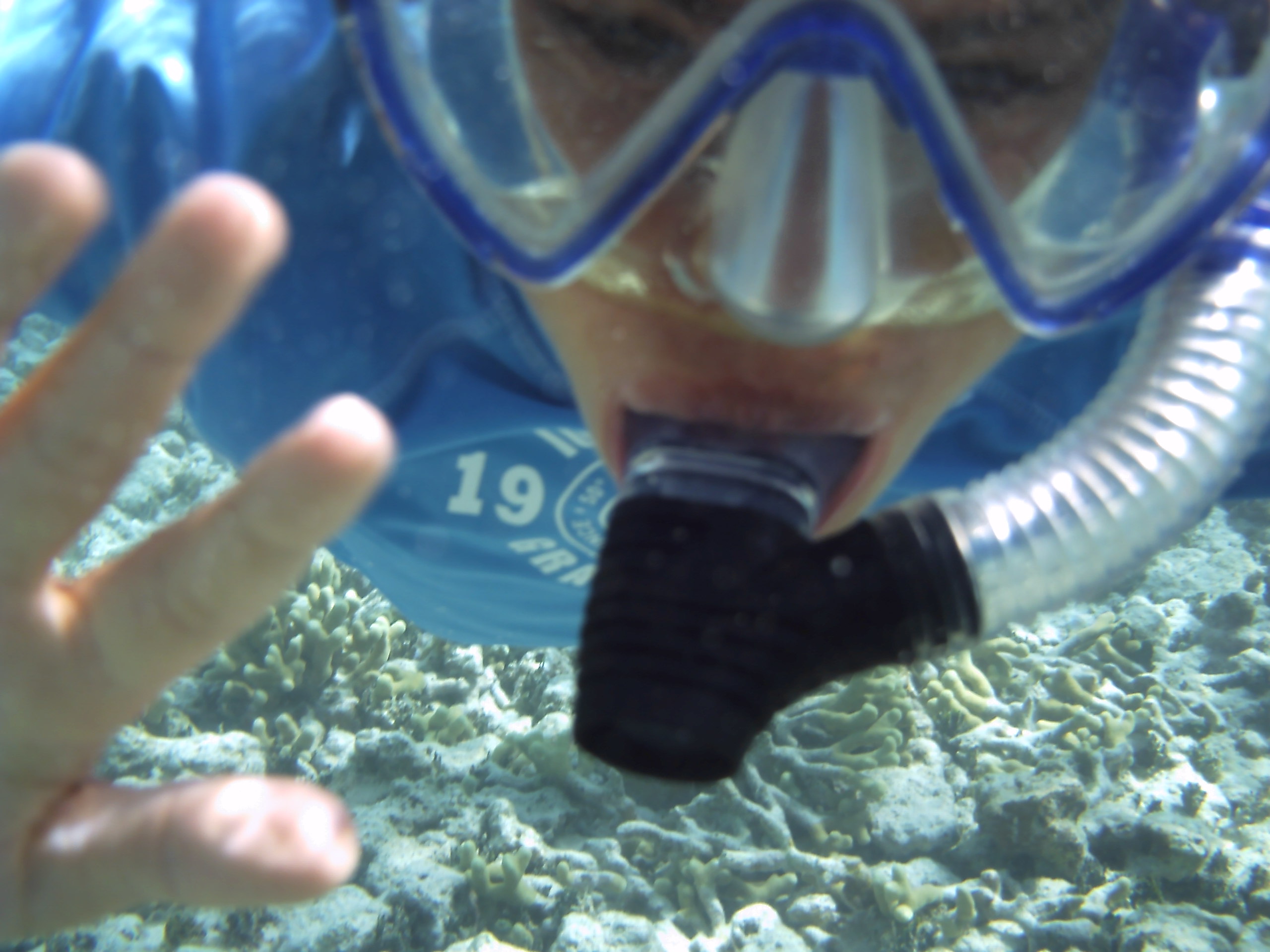 Met de duikbril met onderwatercamera wat uitgeprobeerd, waarvan hier het resultaat. Je blijkt ook te kunnen filmen met dat ding, maar dat ging nog meer per ongeluk. De mooiste vissen stonden er niet op (verkeerde knopje gedrukt waarschijnlijk?)