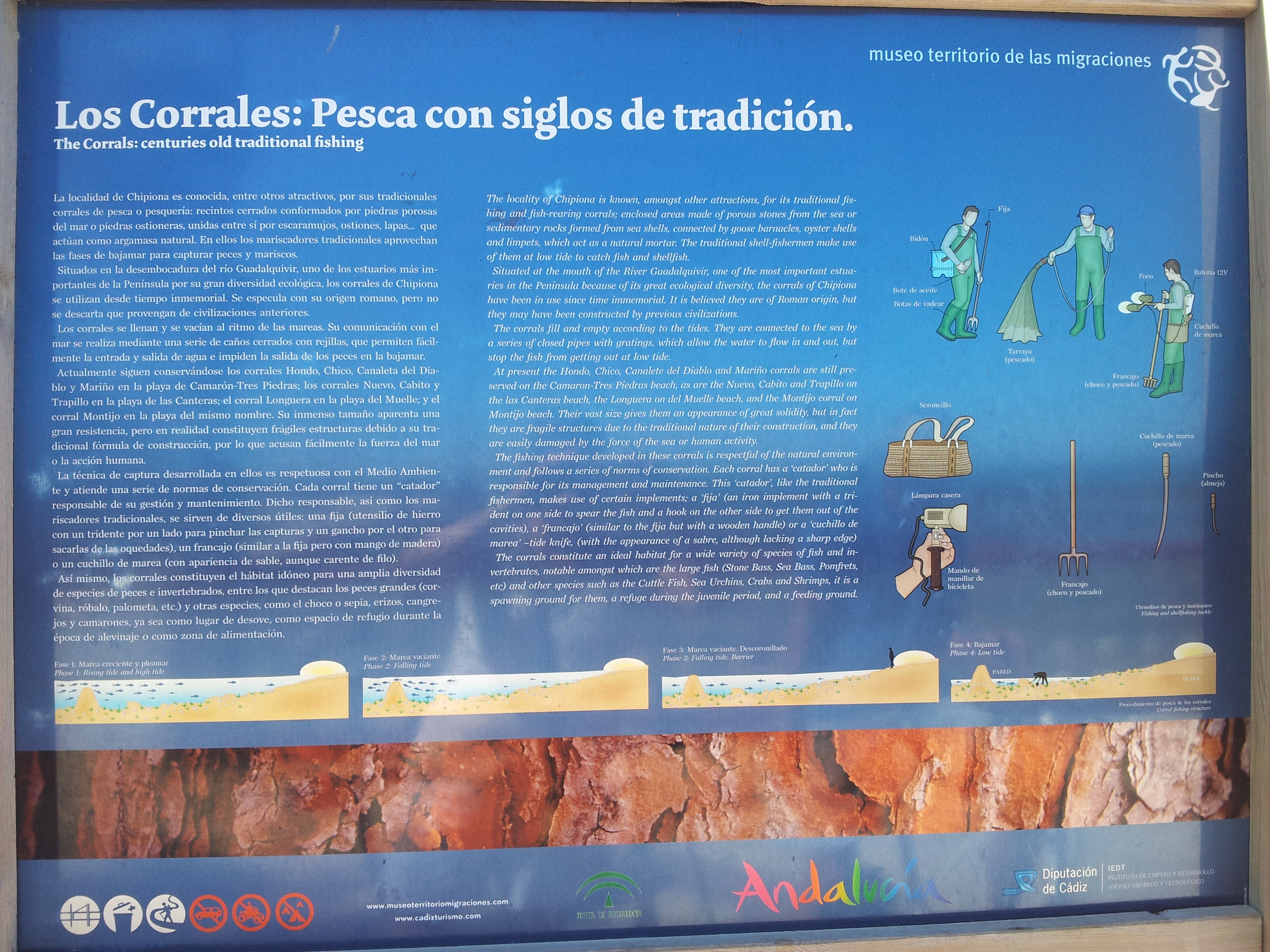 Chipiona is een stadje met 2 gezichten: een rustig deel met een leuk strand en heel oude (Romeinse) viskoralen, een soort rondlopende dijkjes waar nog steeds vis en schelpdieren in gevangen wordt omdat deze er bij HW in zwemt en bij LW niet meer uitkomt; om de hoek bij de vuurtoren (de hoogste van Spanje) begint het drukke deel, dat wel een soort Scheveningen of Zandvoort lijkt. Een boulevard waarover je kan flaneren en fietsen en bomvolle stranden.