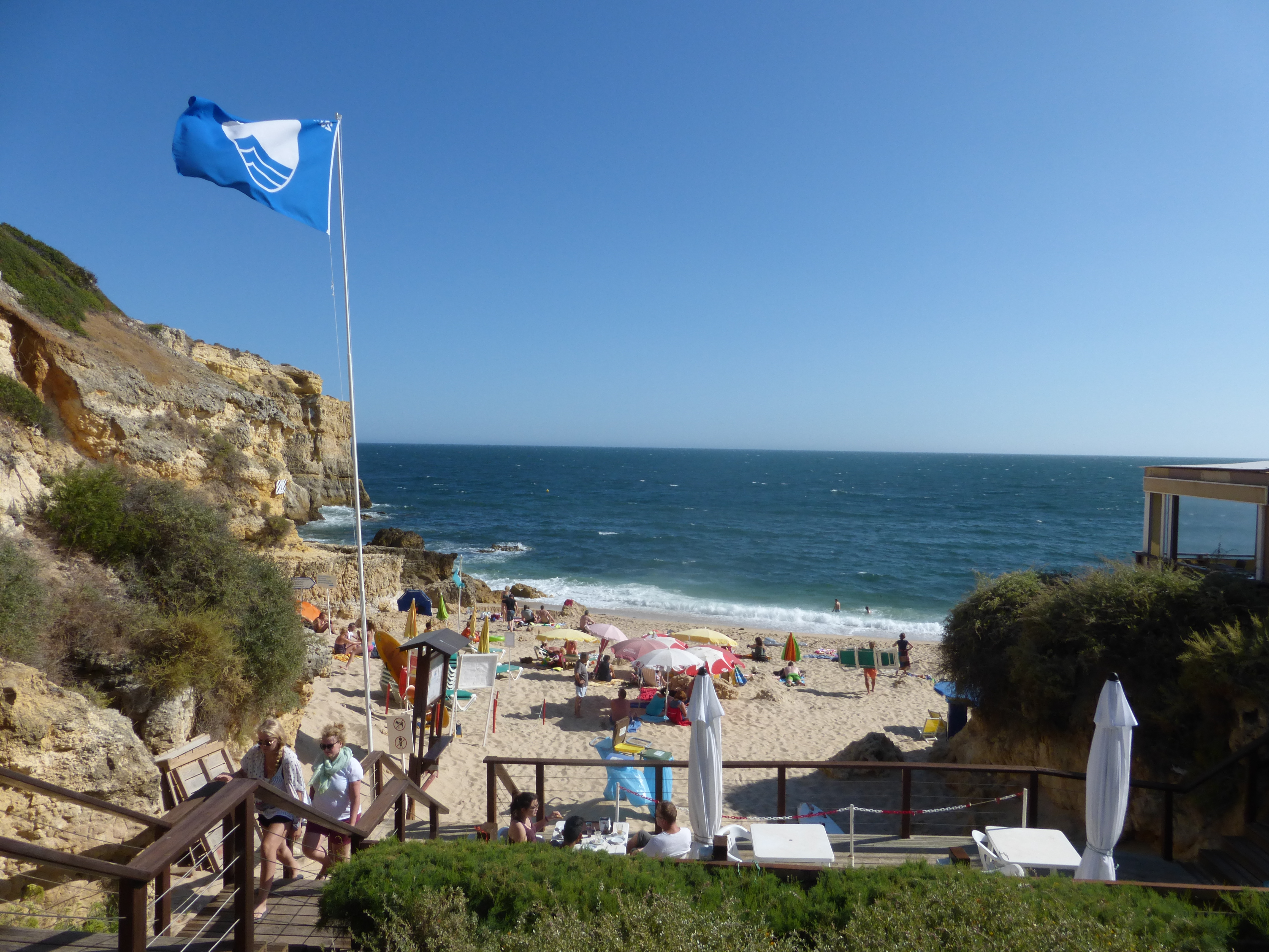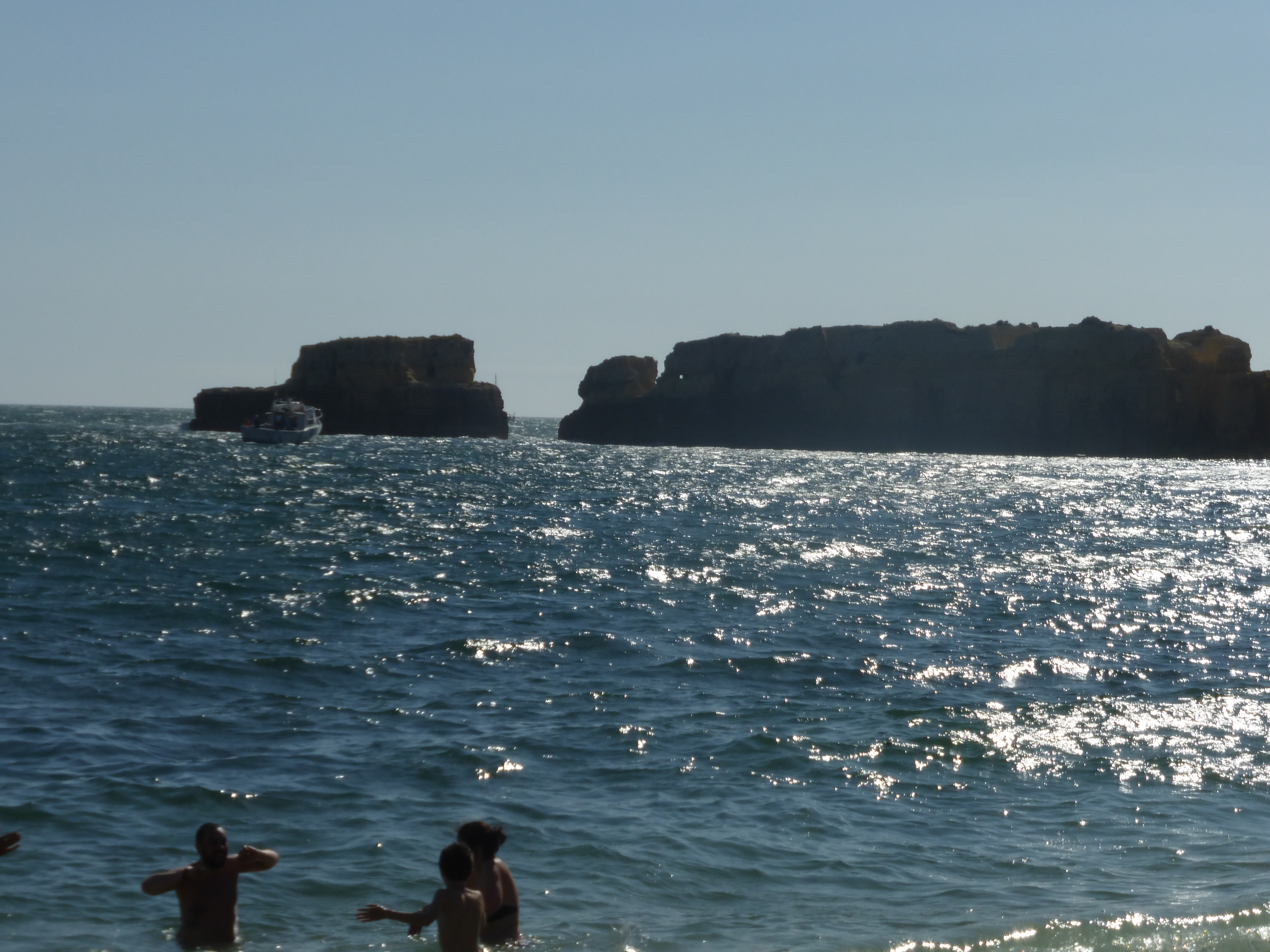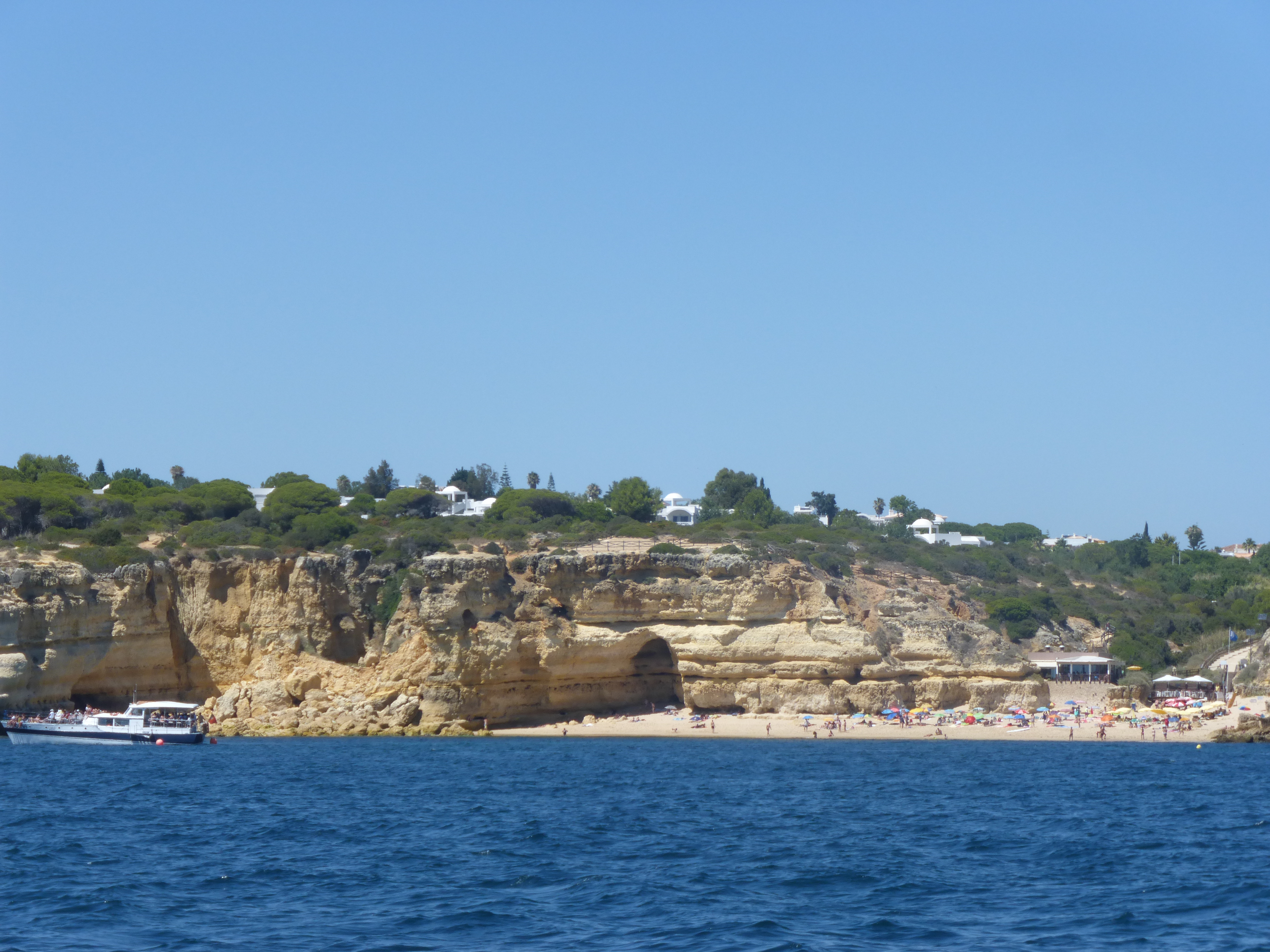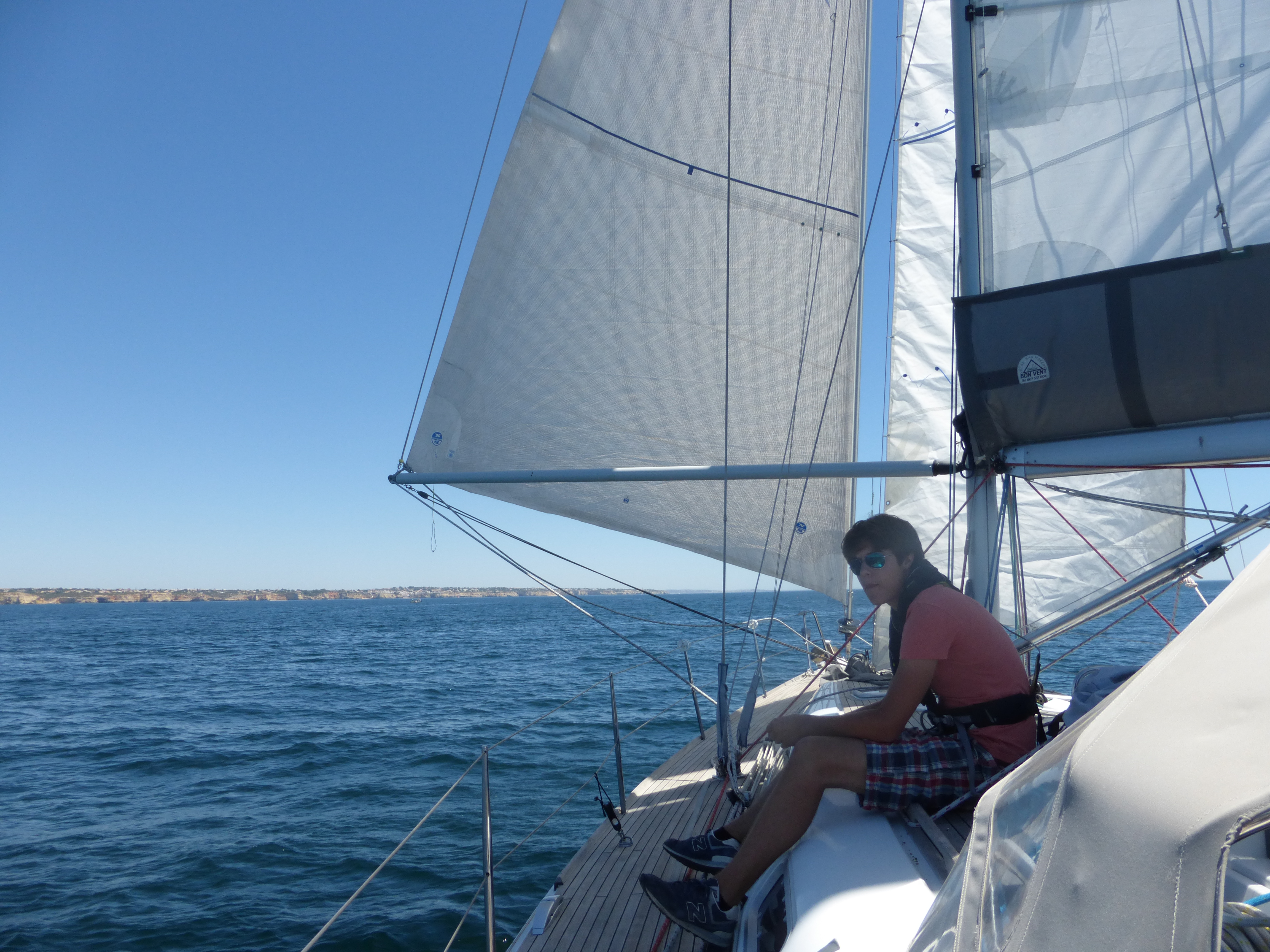 We zeilden van Lagos naar Albufeira en kwamen vlak langs het strandje van Hapimag waar we gisteren nog op het terras een visje of spareribs aten.