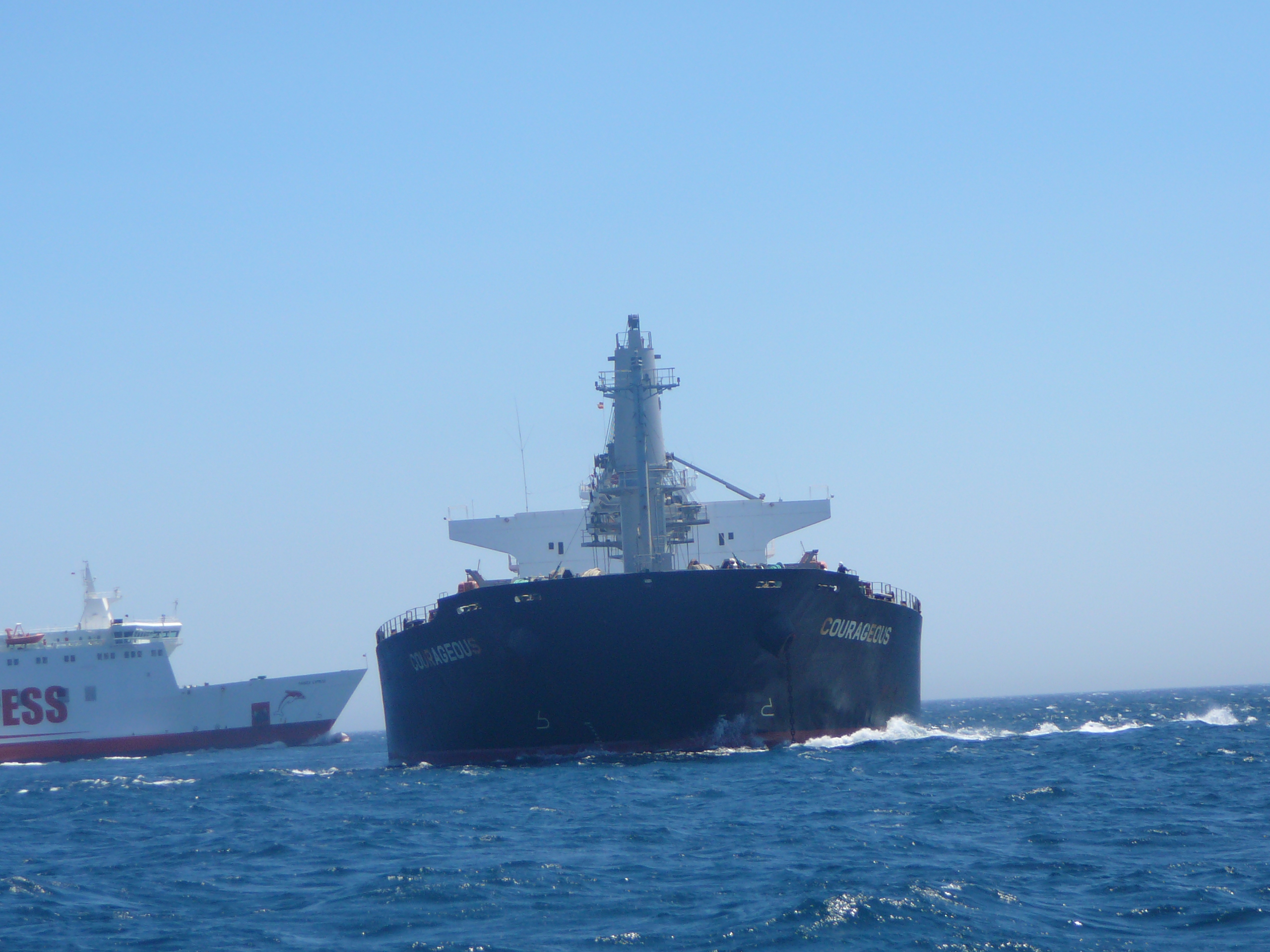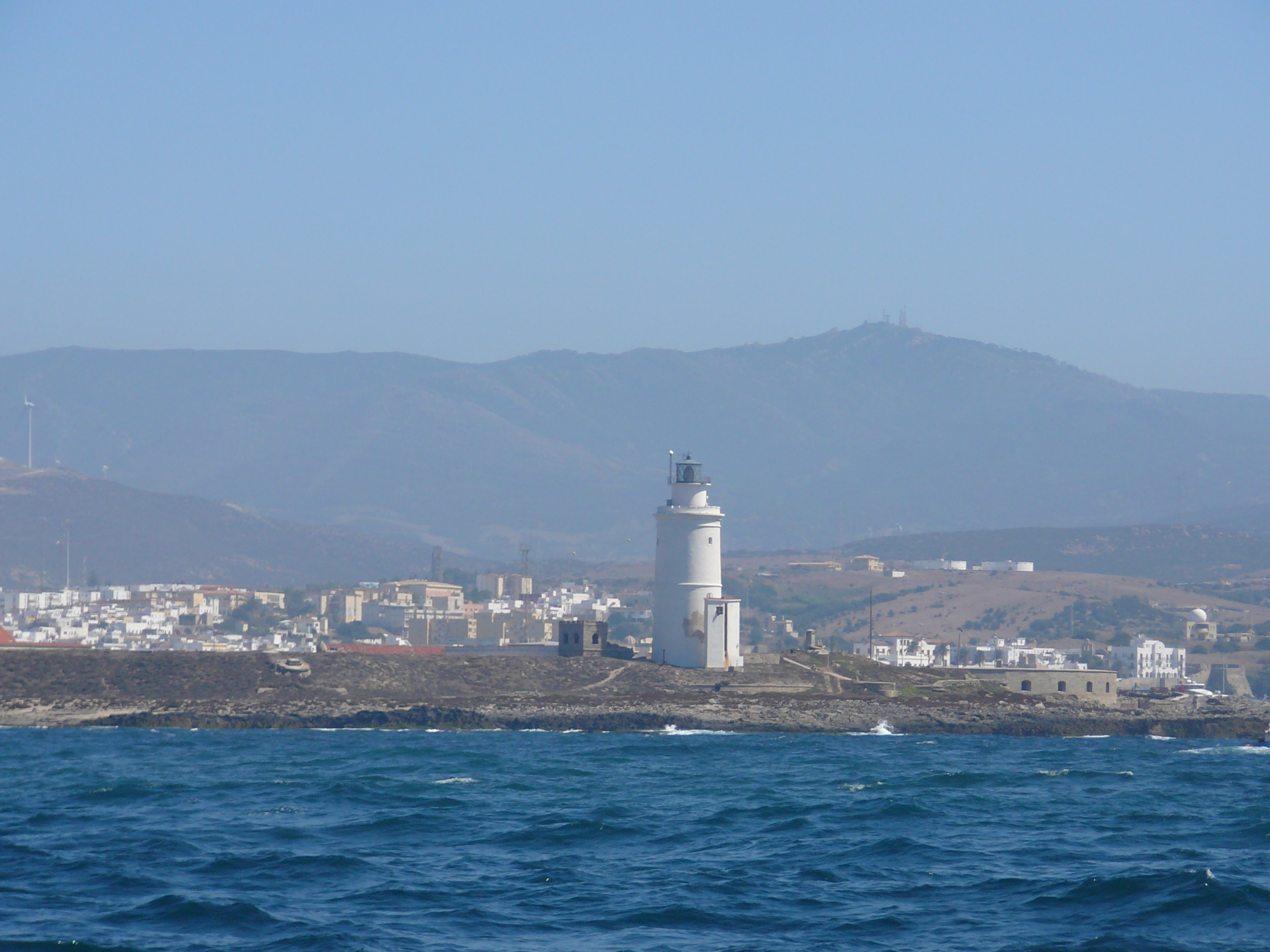 20 augustus varen we 2 uur na LW de haven uit om 9 uur in de ochtend. Eerst 2 uur op de motor, maar voor Tarifa komt de wind opzetten. Het waait daar 300 dagen per jaar meer dan 30 knopen. Wij treffen max 15 knopen, gelukkig wel West, dus lekker voor de wind. Na Tarifa wordt de straat steeds smaller en de wal aan beide zijden steeds hoger, zodat de wind in een trechter verder versnelt.