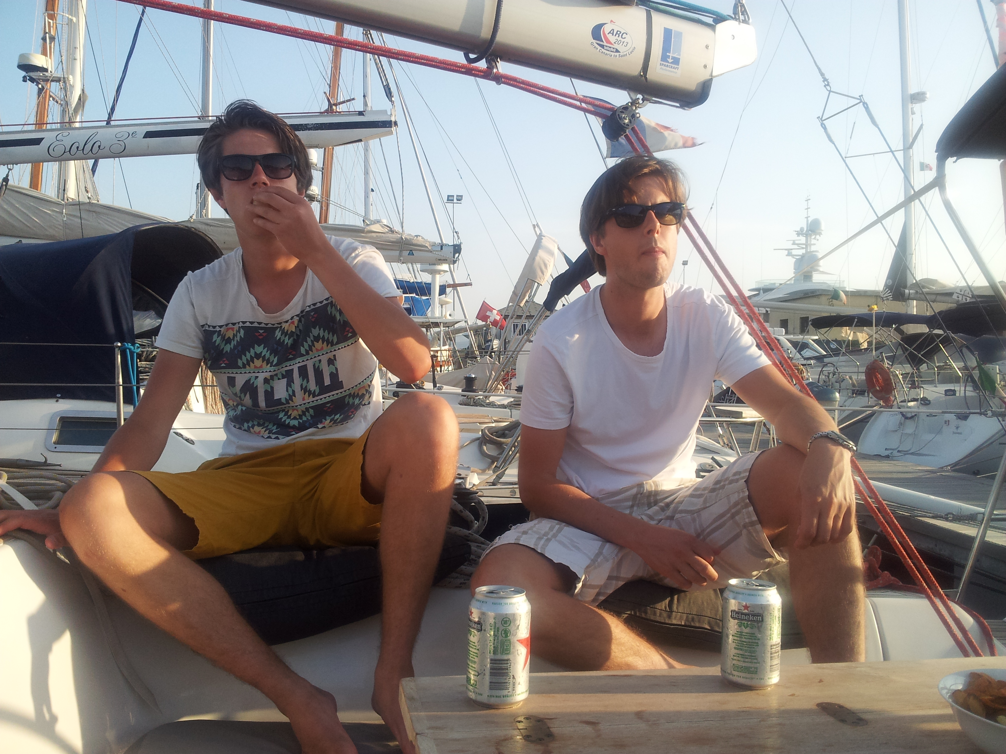 Lennard en Martijn komen aan! Leuk weerzien met allemaal goede verhalen en goed nieuws van thuis en van henzelf. We liggen inmiddels in Olbia, waar ze aan boord stappen in de haven van de Cercolo Nautico di Olbia. We liggen er prima en bekijken het stadje met hen.
