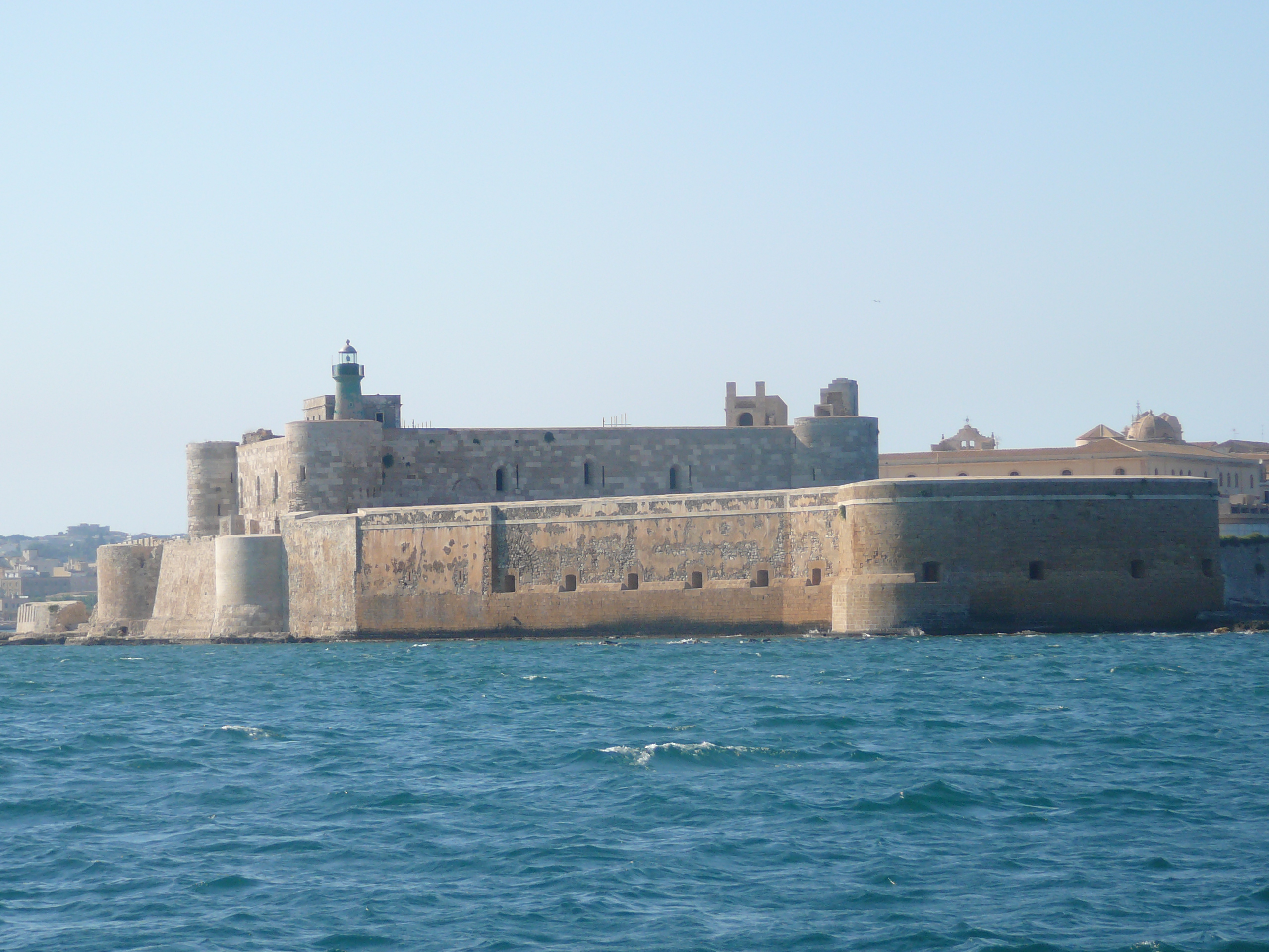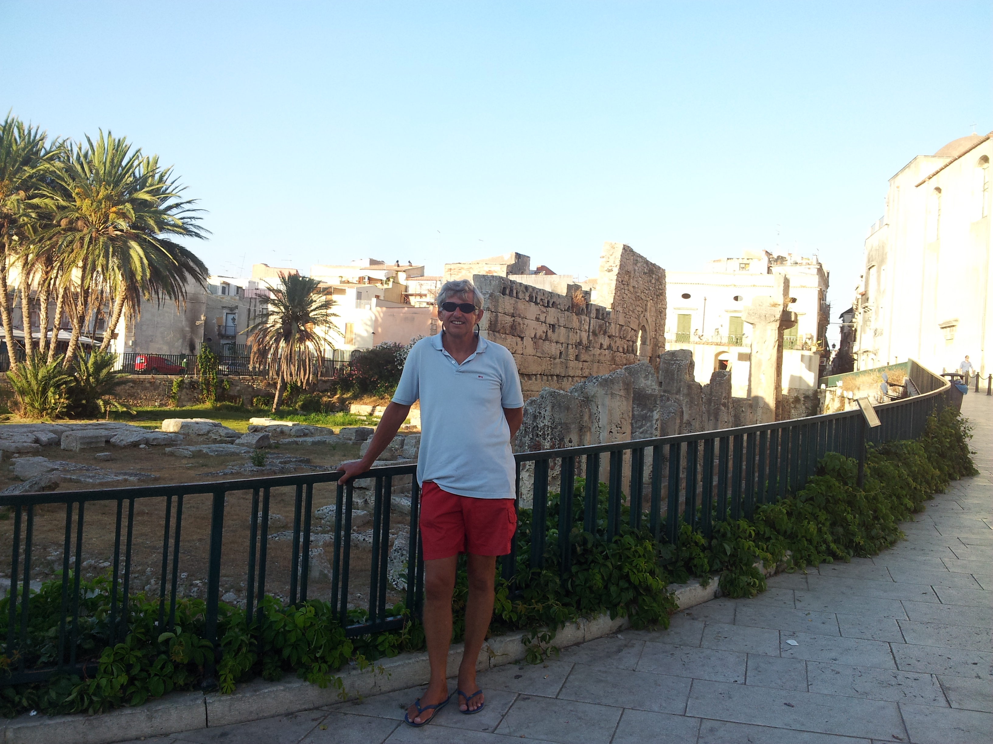 Syracuse is een van de belangrijkste bolwerken van het Magna Graecia geweest en stak zelfs de stad Athene een tijd naar de kroon. De Grieken kozen deze locatie heel zorgvuldig: bijna op de zuid-oost punt van Sicilië, dus strategisch gelegen, vruchtbare grond alom, geen gevaar van de Etna meer, die te ver weg is. En natuurlijk de schitterende natuurlijk haven/baai die door een schiereiland beschermd wordt. Bovenop de Griekse stad zijn flink wat “lagen” van opeenvolgende beschavingen gebouwd, maar middenin de oude stad is nog een mooie ruïne van de tempel van Apollo en in de muren van de kathedraal zijn de Dorische zuilen van een oude Griekse tempel te zien. De oude tempel met zijn originele maatvoering is gewoon gebruikt als frame voor de kathedraal!