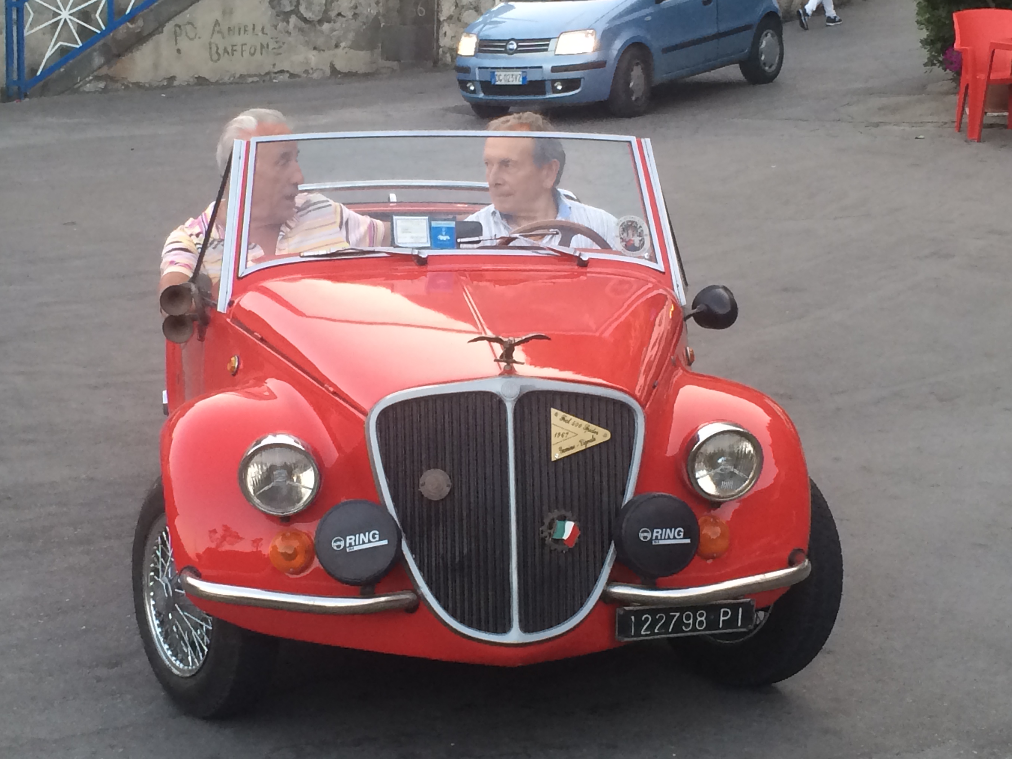 We stappen om 18:30 uur de wal op en het eerste wat we zien is een Fiat 500 Spider (de enige ter wereld, schatten we zo in).