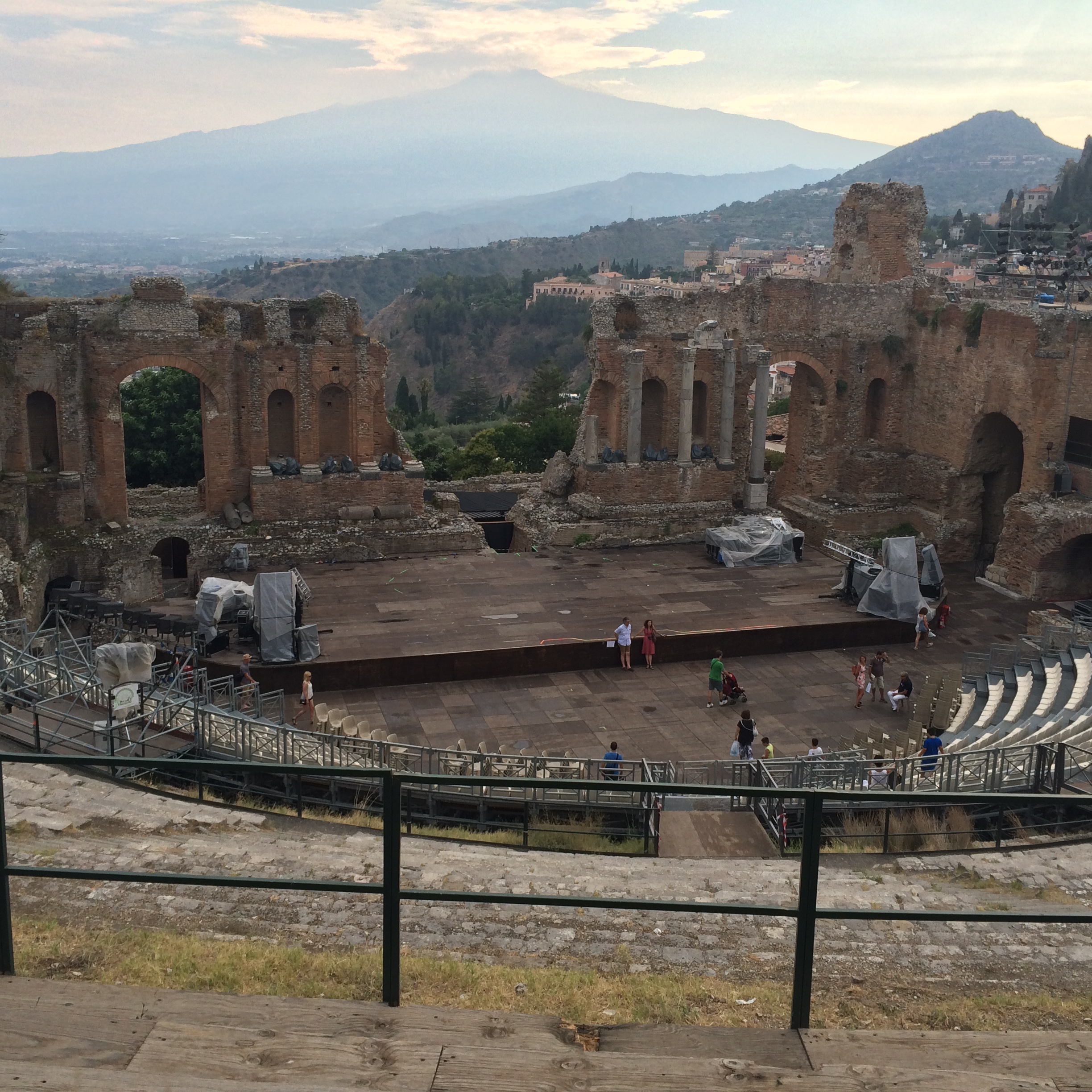 Daarna naar Taormina waar we natuurlijk het prachtig gelegen Griekse amfitheater (met uitzicht op de Etna) bekeken en vervolgens heerlijk gegeten hebben in het oude stadje. Net onder de drukke straat met alle bruiloften en toeristen in een echt leuk italiaans restaurant La Dracena. Dat is geen draak maar een boom die in de tuin staat…