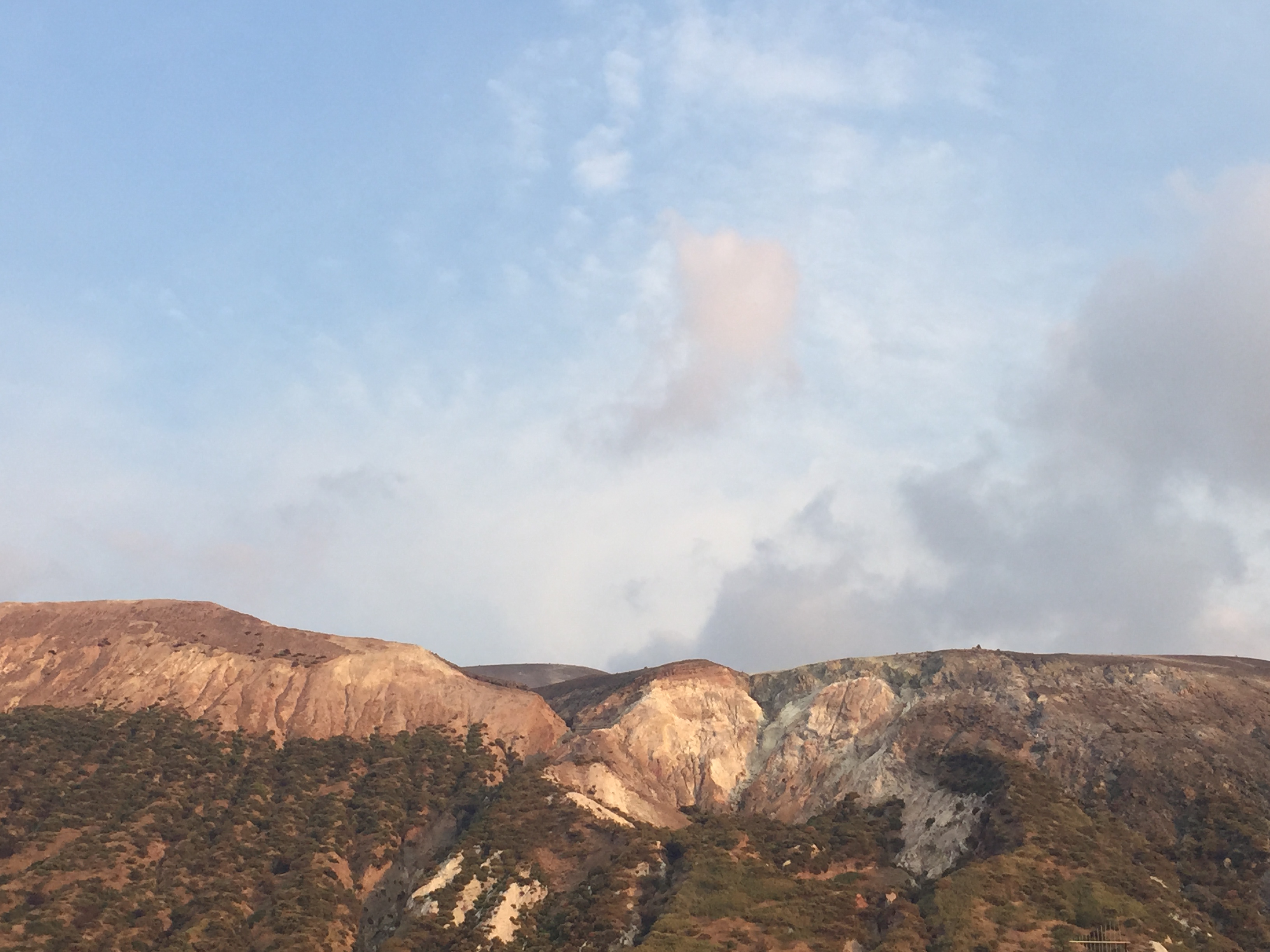 Er liggen 2 dorpjes op dit eiland, waar de diehards gewoon blijven wonen ondanks het risico op een uitbarsting. Ze zijn onderling alleen per boot bereikbaar en hebben elk hun eigen school. Je kunt er ankeren, maar er is niet veel te beleven. We besluiten door te varen naar Vulcano, het andere eiland met een nog actieve vulkaan. Daar leggen we om half zeven in de avond aan bij een paar moorings, die door een locale ormettagiori zijn neergelegd. Met de dinghy varen we naar het dorpje, wat erg eenvoudig is. We kopen wat in een open kraam en lopen langs de modderbaden waar mensen in rondwentelen en helemaal wit geschminkt tevoorschijn komen uit het water. Het ruikt er natuurlijk “heerlijk” naar zwavel.