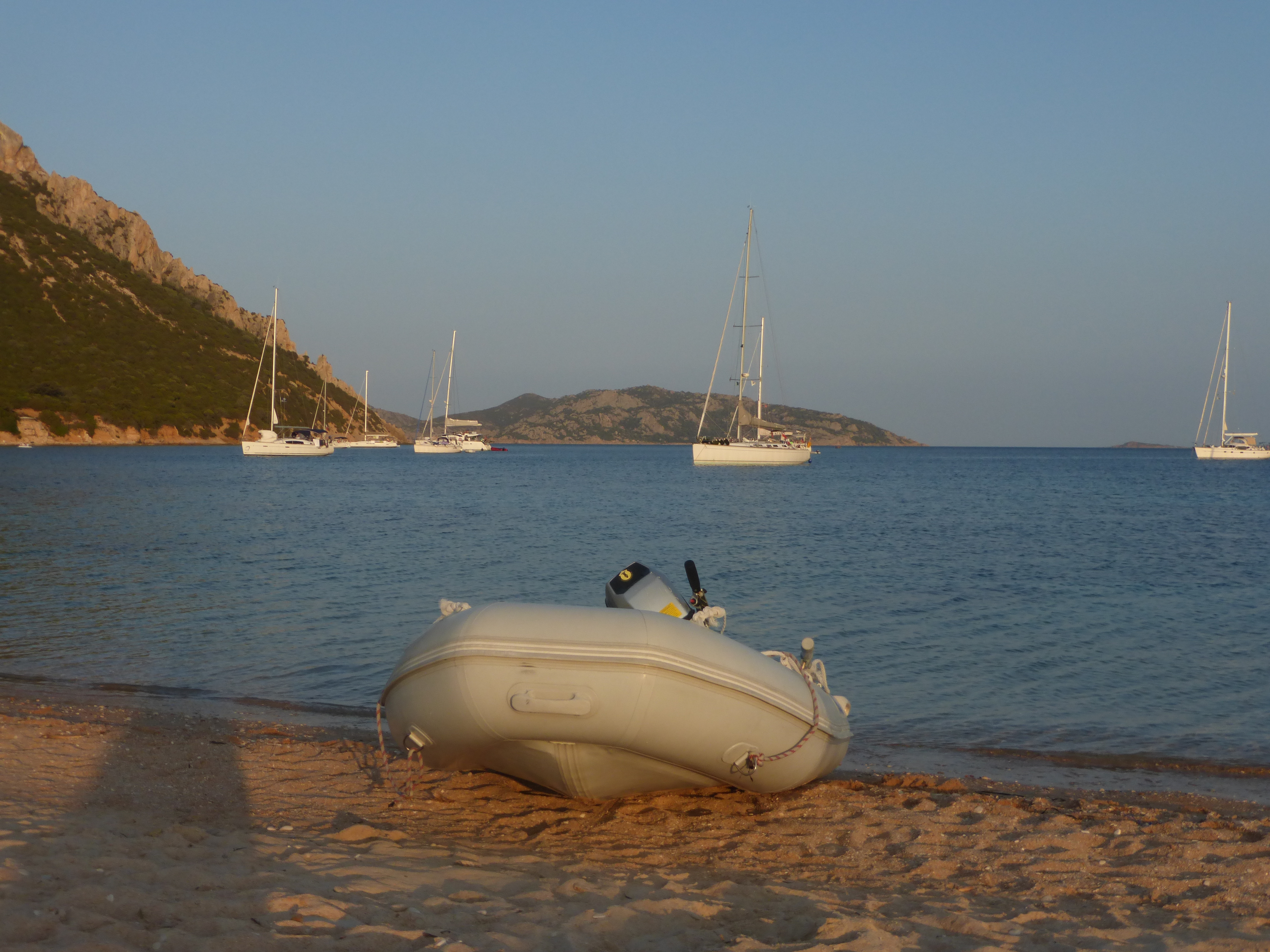 We willen graag nog wat meer zien van deze eilanden dus varen we op de motor een rondje. We zoeken een andere mooie baai, maar er is weinig wat kan tippen aan de baai van Porto Garibaldi! Of het is te vol of het is er niet zo mooi. Uiteindelijk ankeren we in Cala Portese, aan de andere kant van hetzelfde Isola Caprera. Mooi baaitje, nu weer eens een Caraïbisch sfeertje met een mooi strand en een beach bar met muziek.
