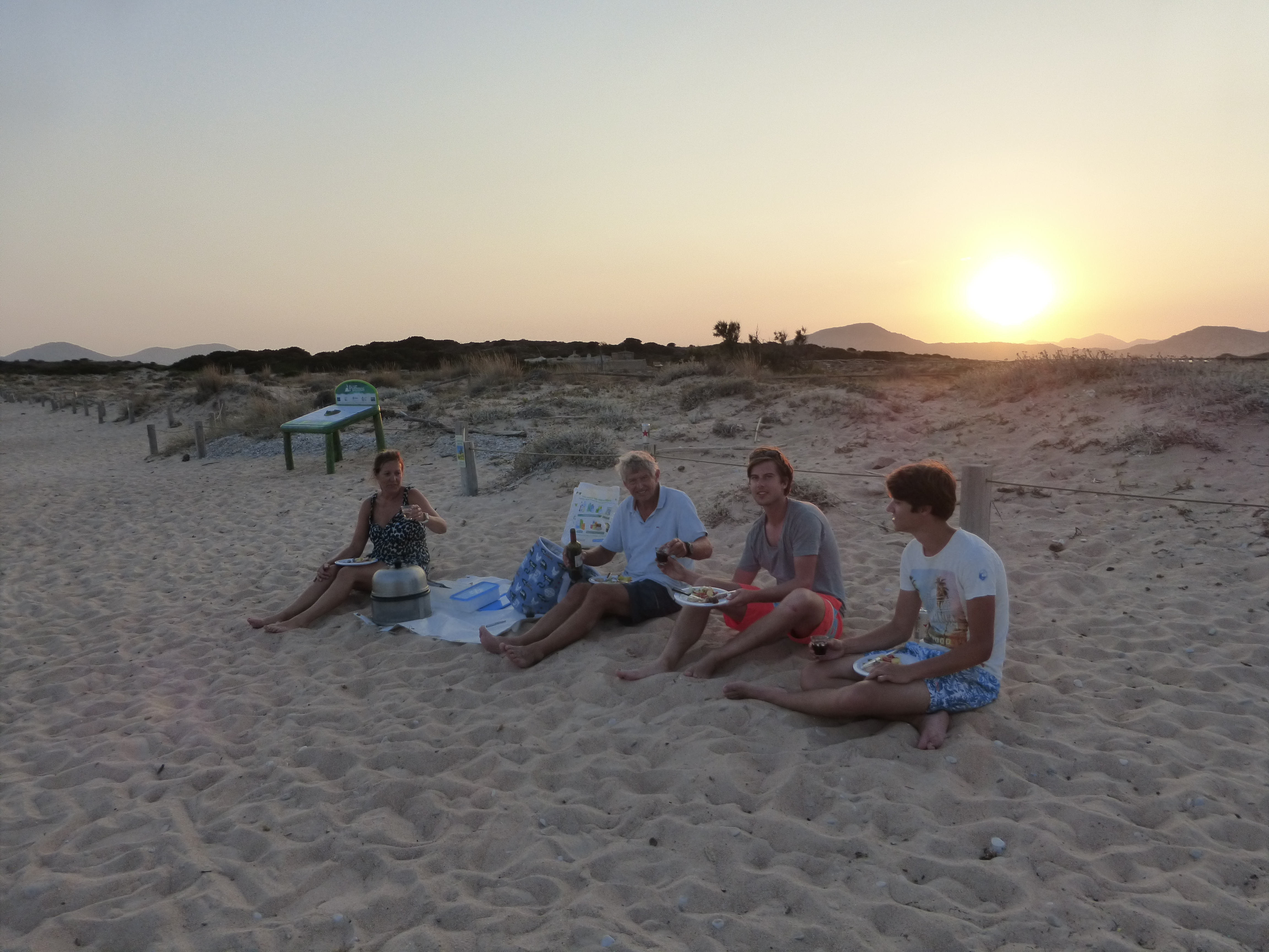 We barbecueën op het strand met onder andere lokale gamba’s van de “Hapimagwinkel”.