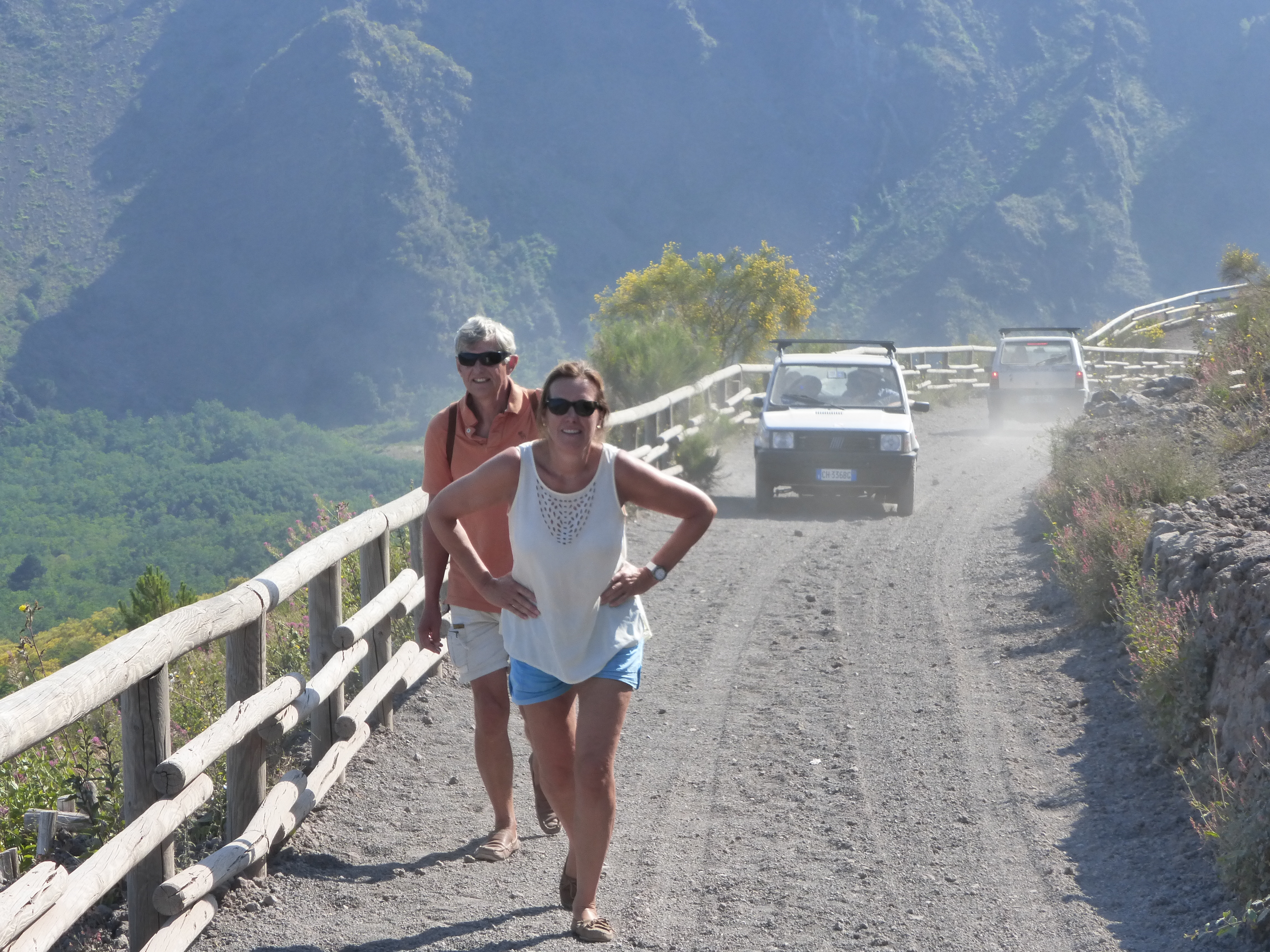 We staan om 7 uur op, want om 8 uur verschijnt de taxi die ons de Vesuvius op brengt. Laatste stuk lopen we en gelukkig is het dan nog heel rustig en niet zo warm. Alleen Fiat Panda 4×4 autootjes kunnen het pad omhoog, maar wij lopen dus. Schitterend uitzicht en een indrukwekkende krater is onze beloning voor deze klim.