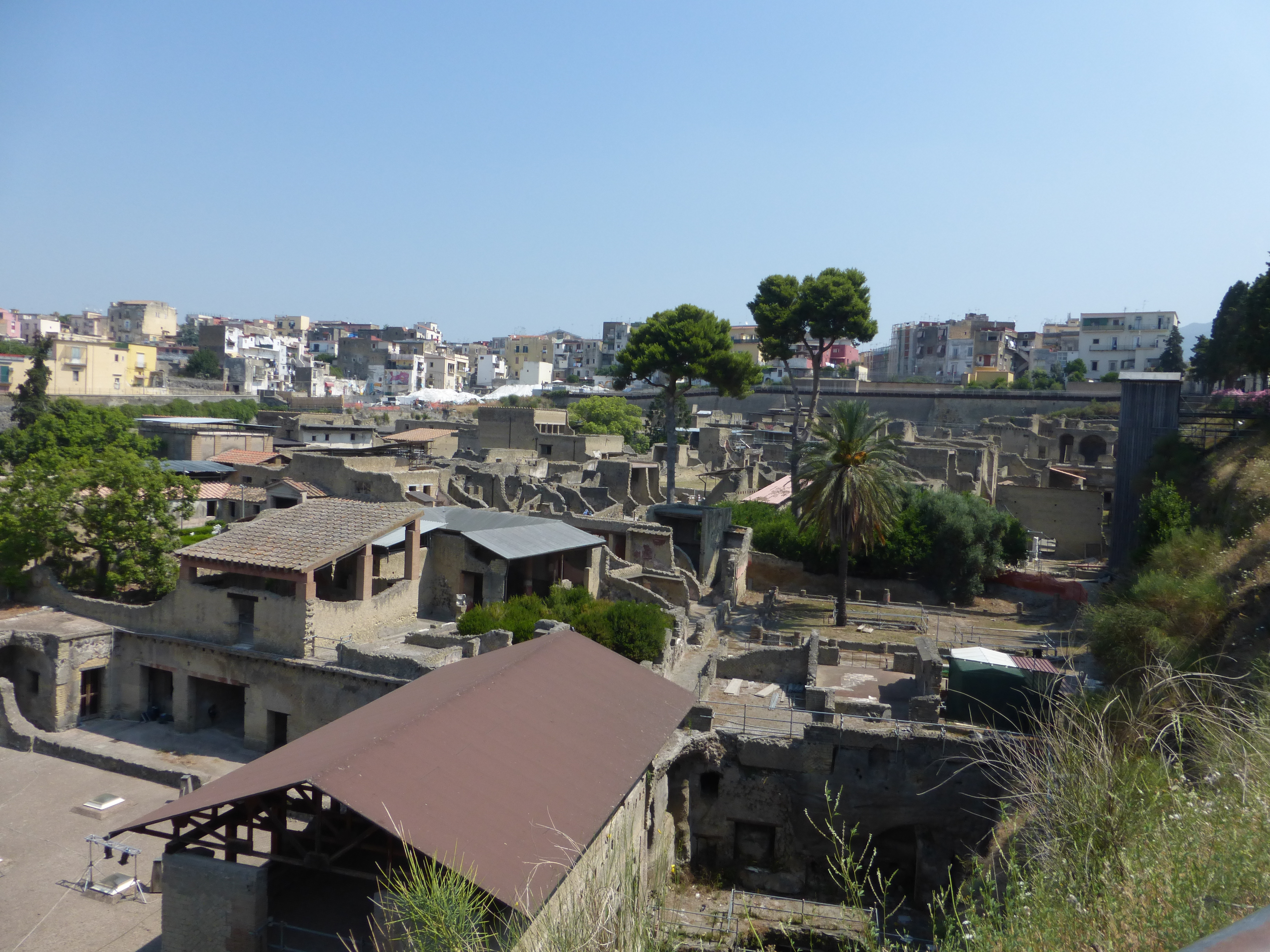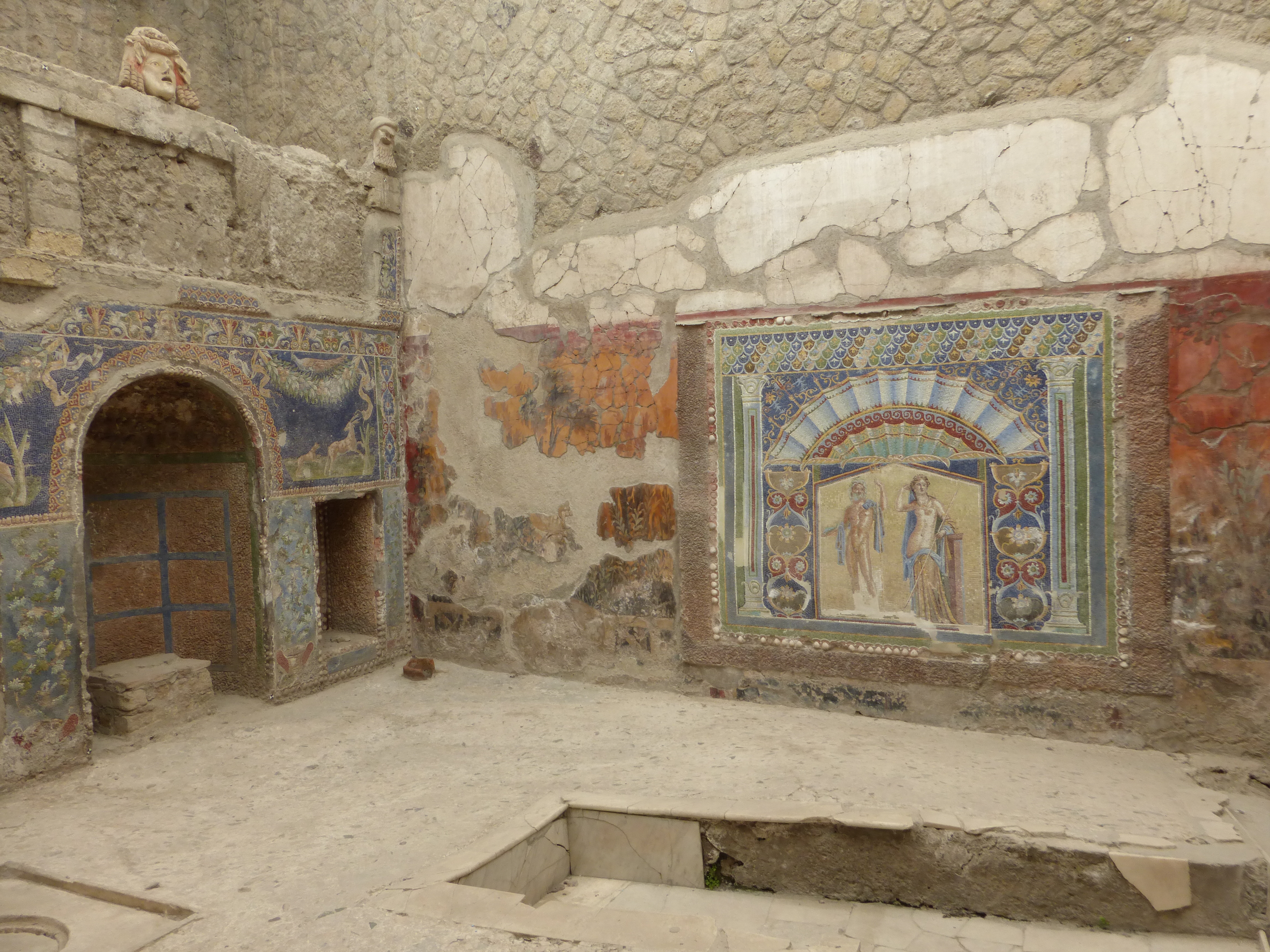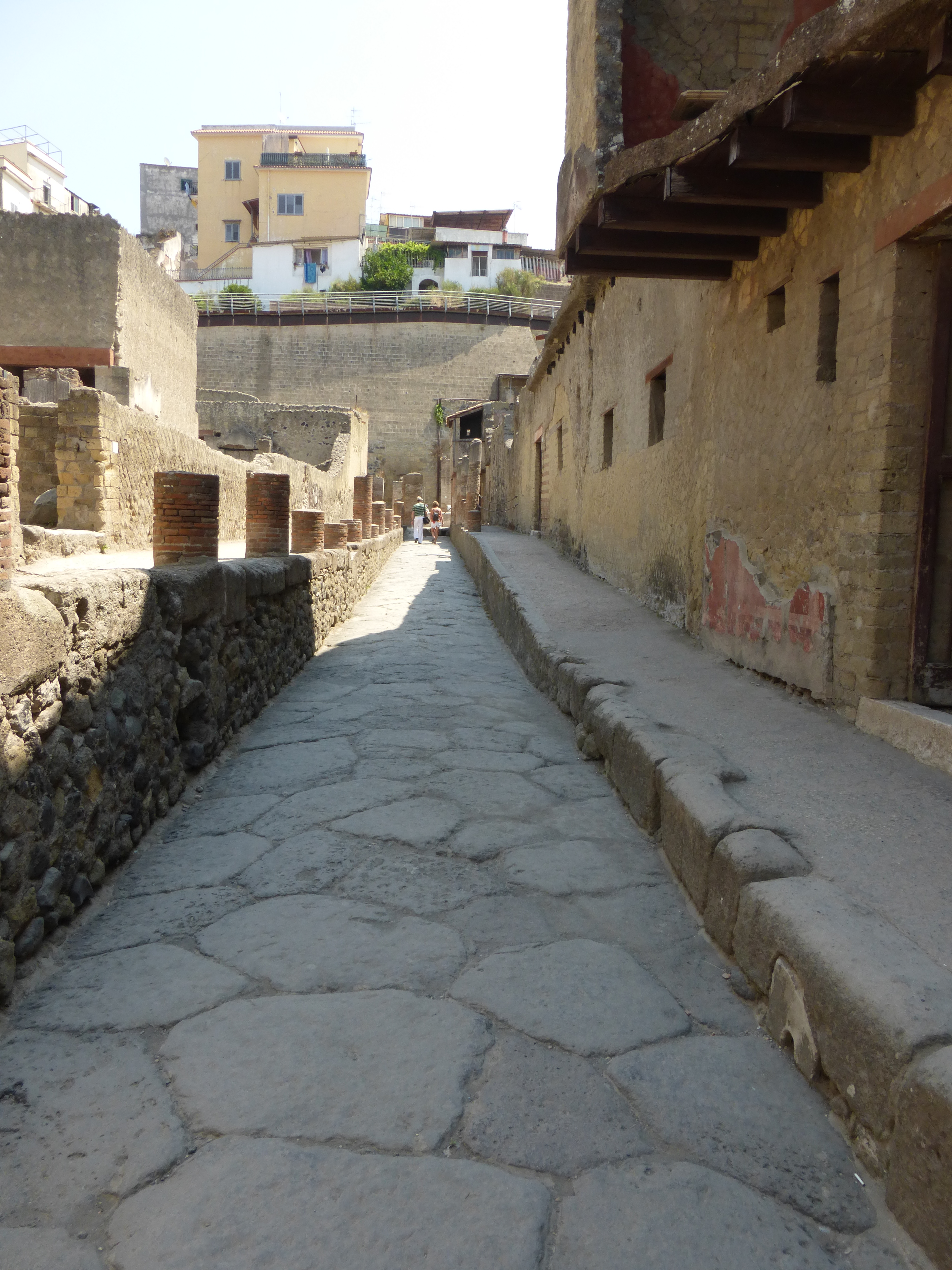 Daarna brengt de taxi ons weer naar beneden en bezoeken we de prachtige Romeinse stad Herculaneum. We dwalen er door de straatjes en bekijken de vele villa’s en badhuizen. En er moet nog zoveel gerestaureerd worden!
