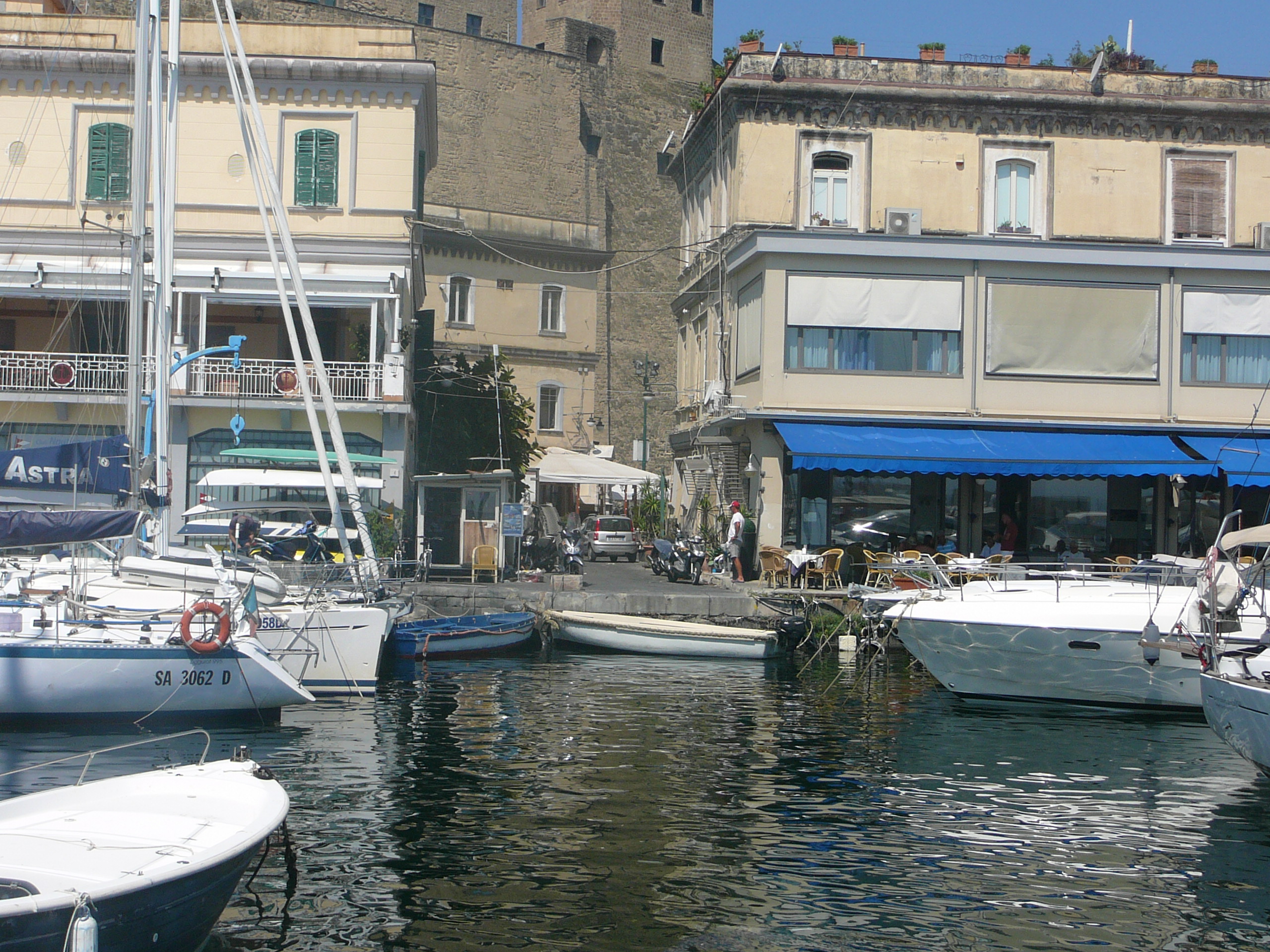 We leggen aan in Santa Lucia, een duidelijk veel welvarender deel van Napels. Ook weer ormetaggiori (boatboys) die de steigers beheren maar hier hebben ze een cooperatie gevormd. Theoretisch hebben ze dan niet allemaal tegelijk dienst maar van deze organisatorische innovatie komt niet veel terecht. Ze zitten gewoon de hele dag met zijn allen in en voor hun hok te kletsen…