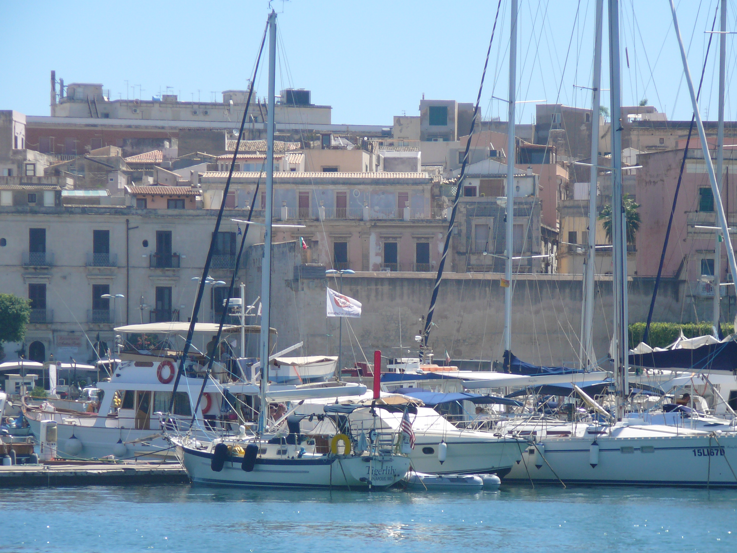 We varen naar Syracuse waar we aanleggen in een wat eenvoudige maar gezellige kleine jachthaven. Je loopt direct de oude stad in. Tigerlily ligt er ook en we praten even gezellig over ons beider ervaringen.