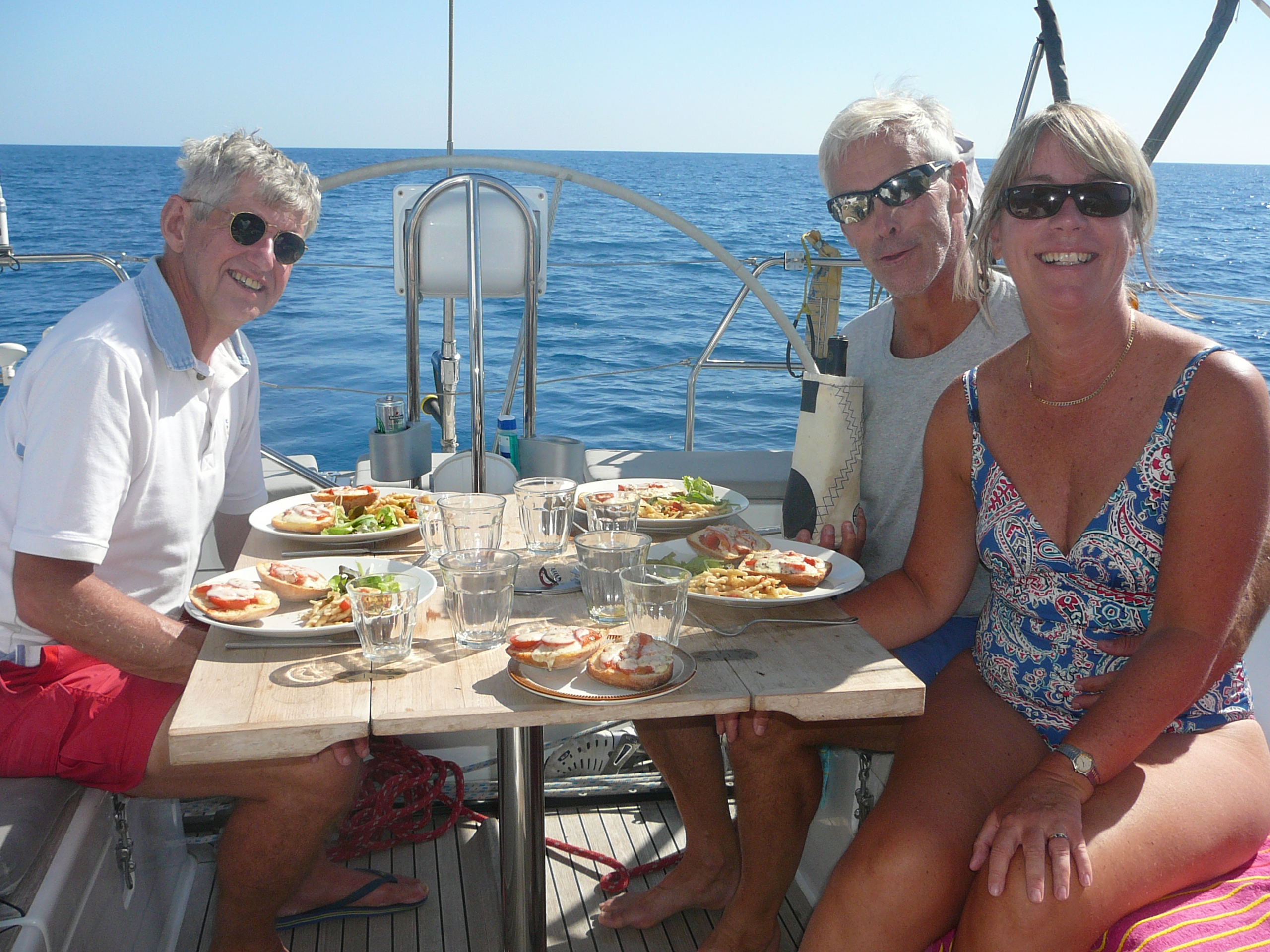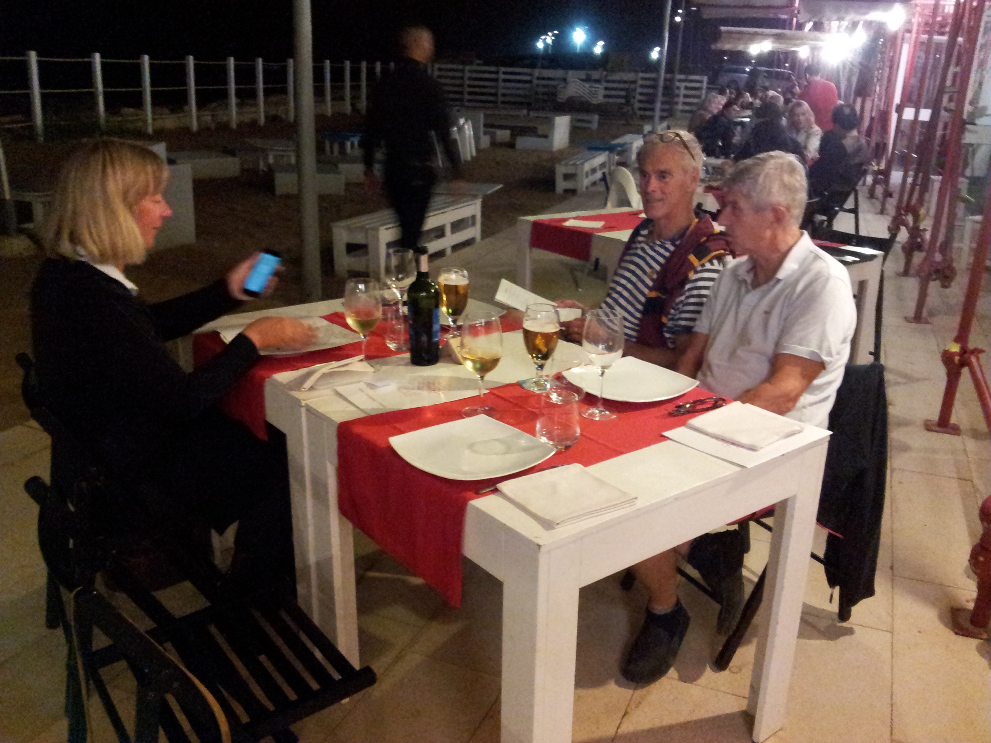 We vliegen met Pieter en Brigitte samen naar Comiso, het vliegveldje vlakbij Ragusa. We landen in het donker, nemen de taxi die voor ons klaar staat en vinden “op de tast” de boot terug. Alles is gelukking in orde. Na de walstroom aangesloten te hebben, gaan we lekker op de wal eten.