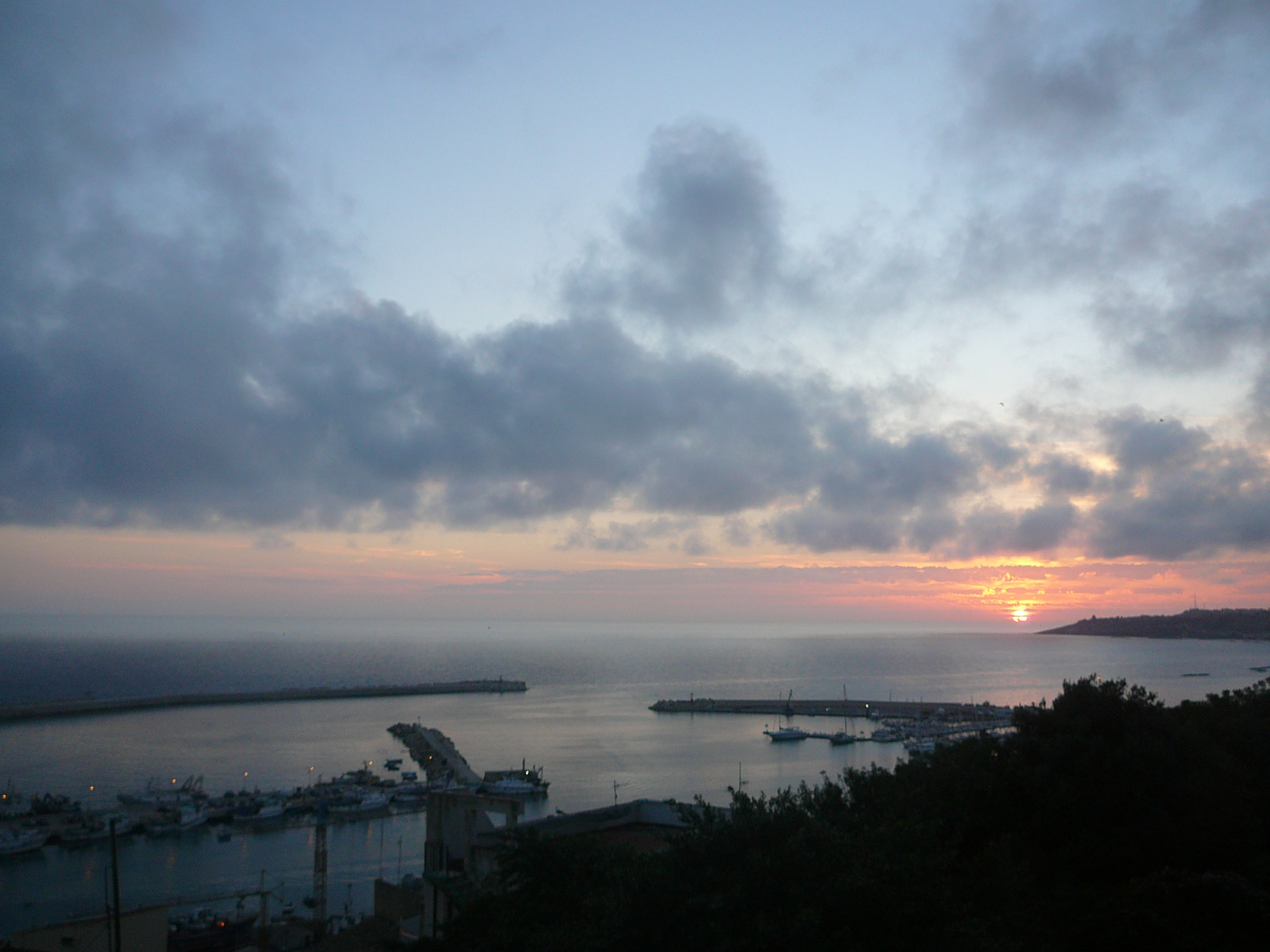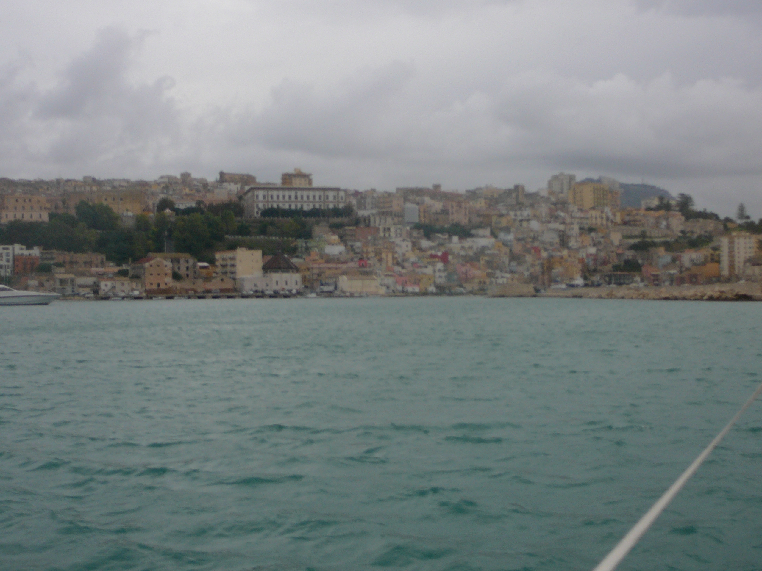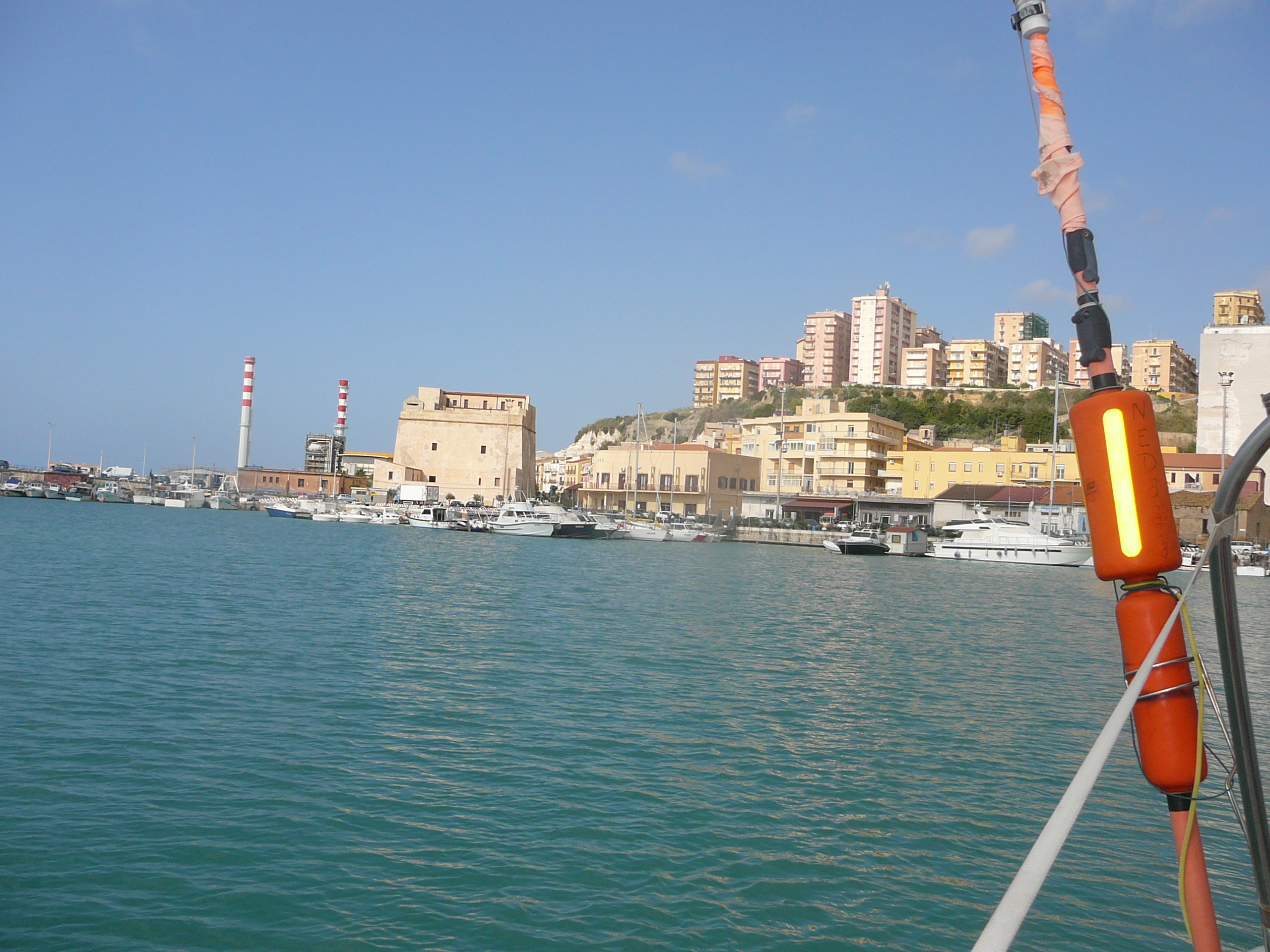 We zeilen naar Sciacca, Heerlijk voor de wind afkruisen met de genua op de boom. We timen de gijp perfect en komen precies voor de havenmonding uit.