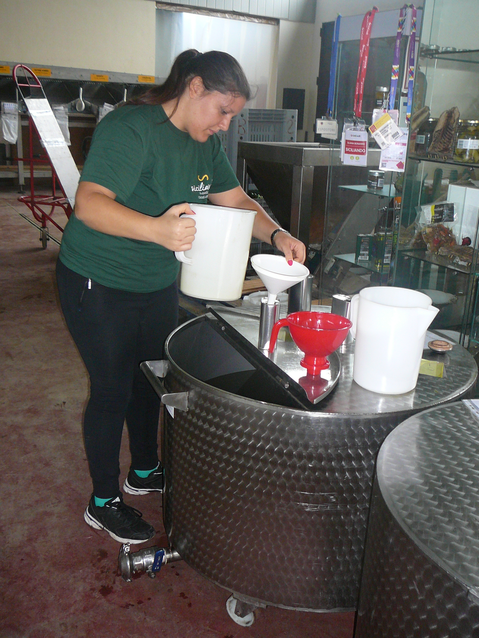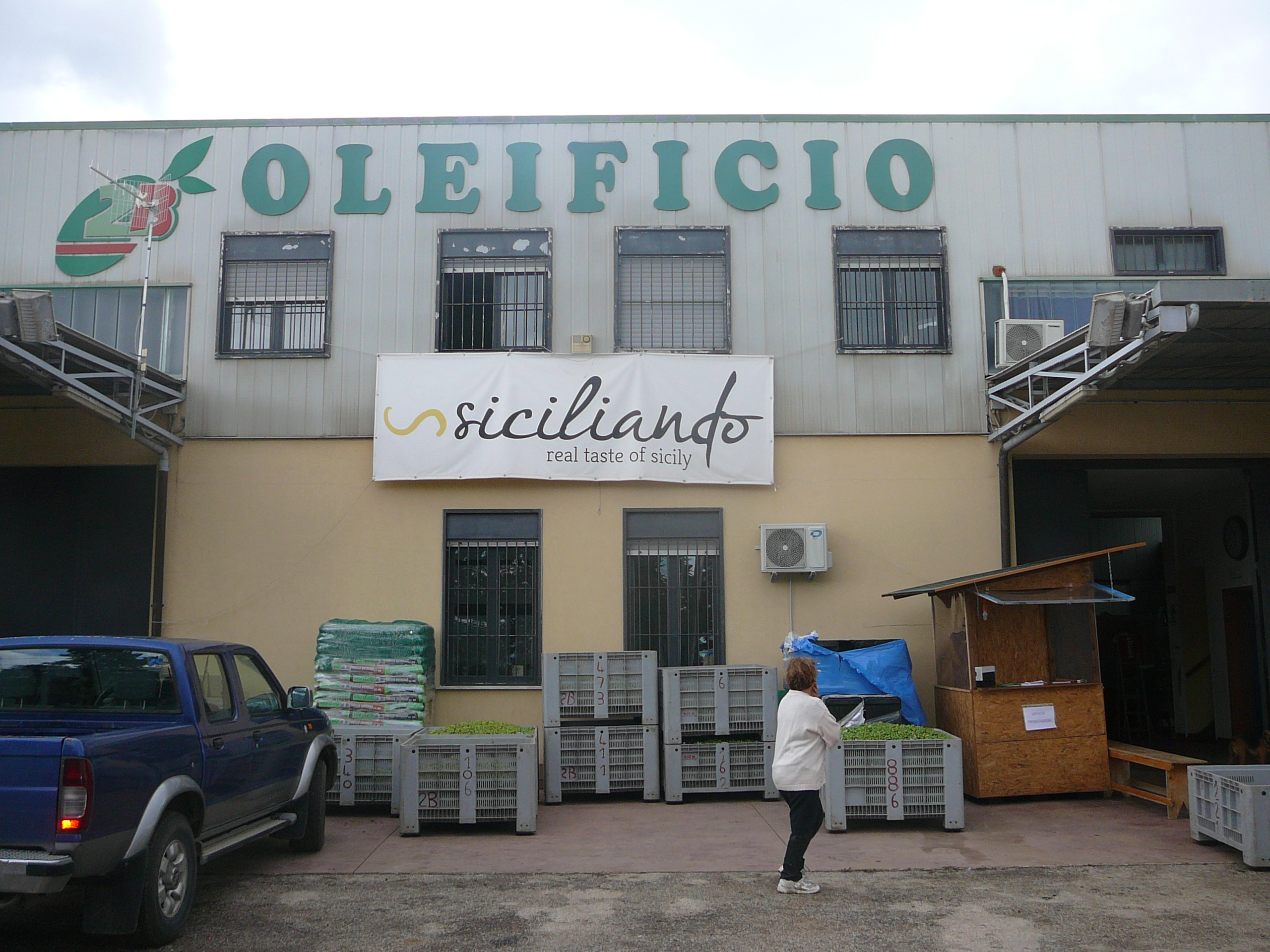We stoppen onderweg bij de kleinschalige olijfolie-fabrikant die in volle actie is. Er komen continu bestelbusjes, auto’s met aanhanger en tractoren met karren aan, die hun eigen oogst hier komen inleveren. Het is geen cooperativa, maar een private perserij die sinds 5 jaar wordt gerund door een echtpaar. Zij persen voor de boeren, die de olijfolie zelf weer meenemen om te bottelen. Maar ze maken ook hele mooie olie onder hun eigen merk en ook aanverwante produkten, tot en met olijfpate. We kopen olie van 1 dag oud, die heerlijk is, en een potje olijvenpaté.
