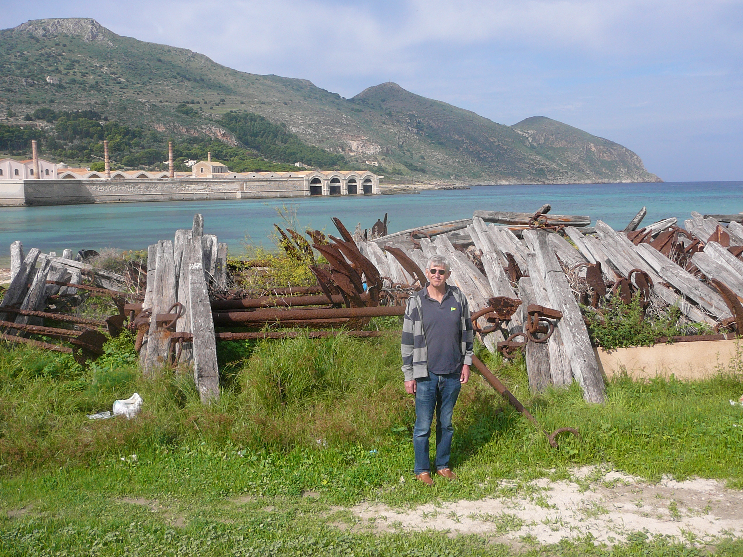We varen 11 mijl, voorbij Marsala, naar Favignana, 1 van de Egadische eilanden voor de westpunt van Sicilië. Leuk klein dorpje op het eiland, dat in 1860 de grootste tonijn-inblikkerij kreeg die je ooit gezien hebt. De familie Florio, ook beroemd van de Marsala-wijnen, kocht de 3 eilanden in 1860 en exploiteerde de tonijnvangst met Matanza’s. Dat zijn enorme drijfnetten in de vorm van fuiken waar de tonijnen in hele scholen tegelijk in kwamen. De tonijntrek komt namelijk 2 keer per jaar precies hier langs! In de oude fabriek is nu een museum waar je kunt zien hoe dat allemaal ging, met roeiboten en handkracht van honderden mensen tegelijk bij het binnenhalen van de netten.