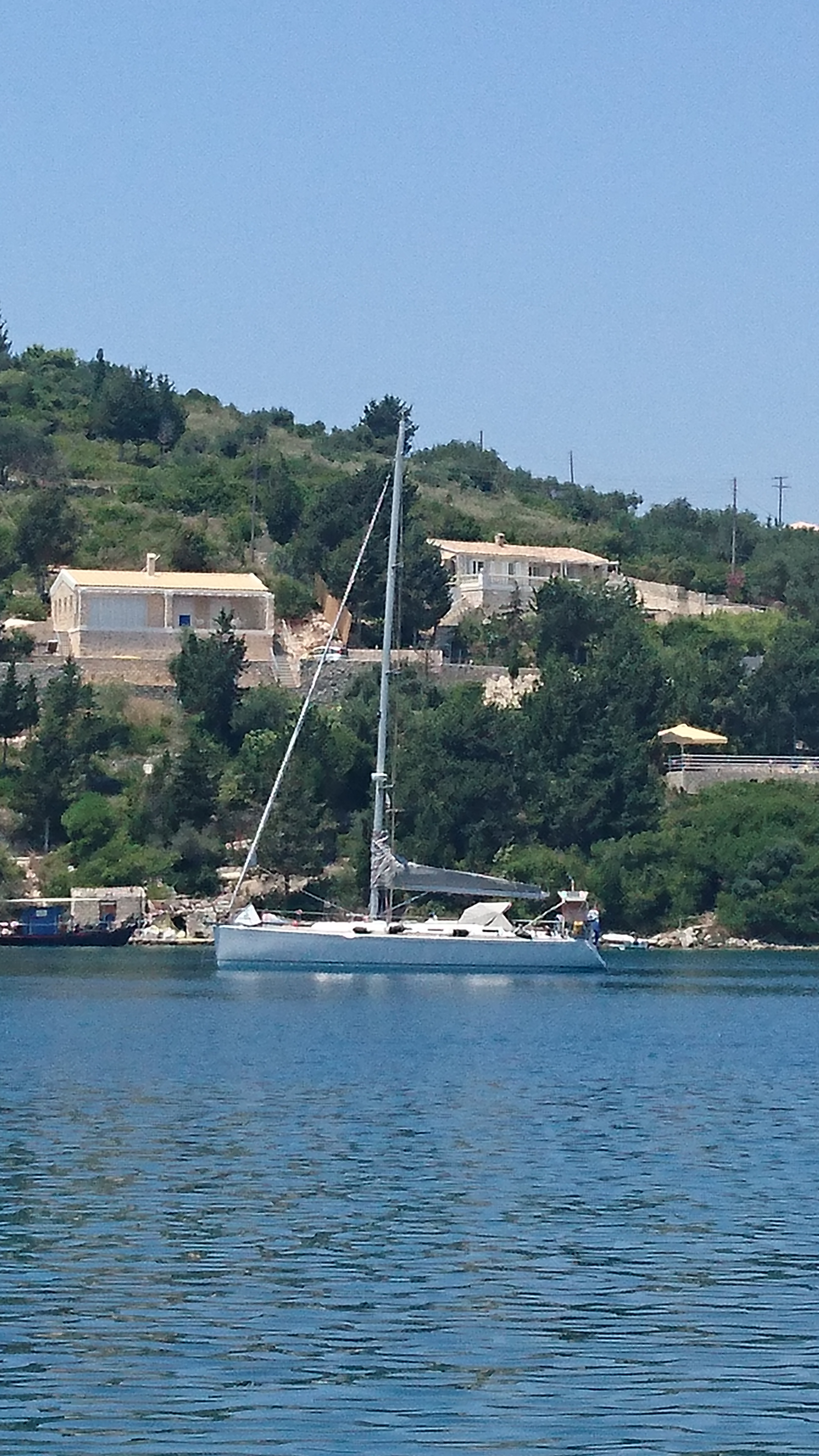 We varen wel 10 mijl op de motor (geen wind) naar Syvota, op de ZO-punt van Lefkas.