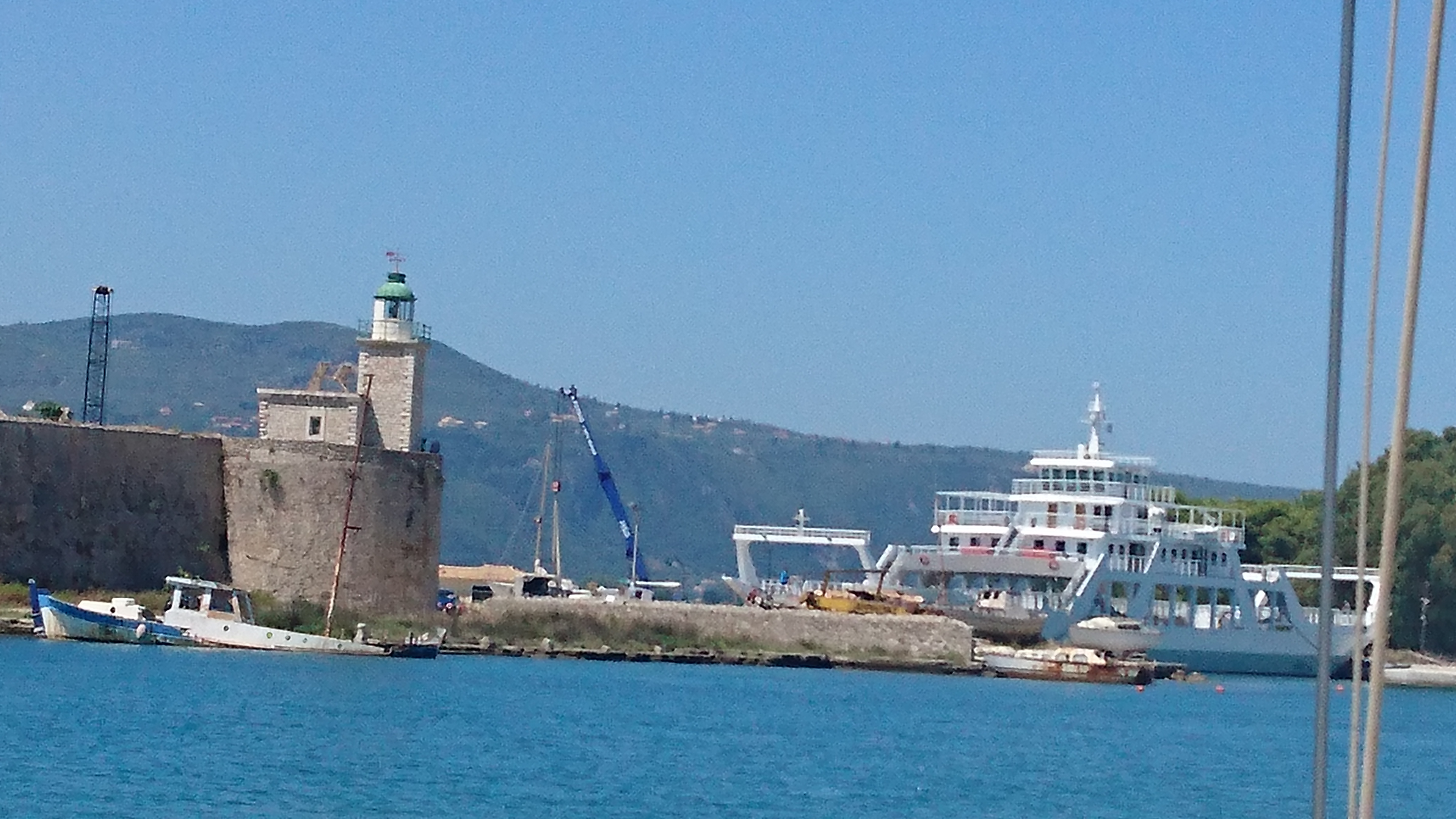 Op de achtergrond de landtong van Aktion, waar nu 3 jachtwerven zijn gevestigd, die vooral winterberging aanbieden (een soort Port Napoleon in het kwadraat). We horen goede verhalen hierover, maar zijn toch vastbesloten om weer terug naar Sicilië te gaan voor de winter.