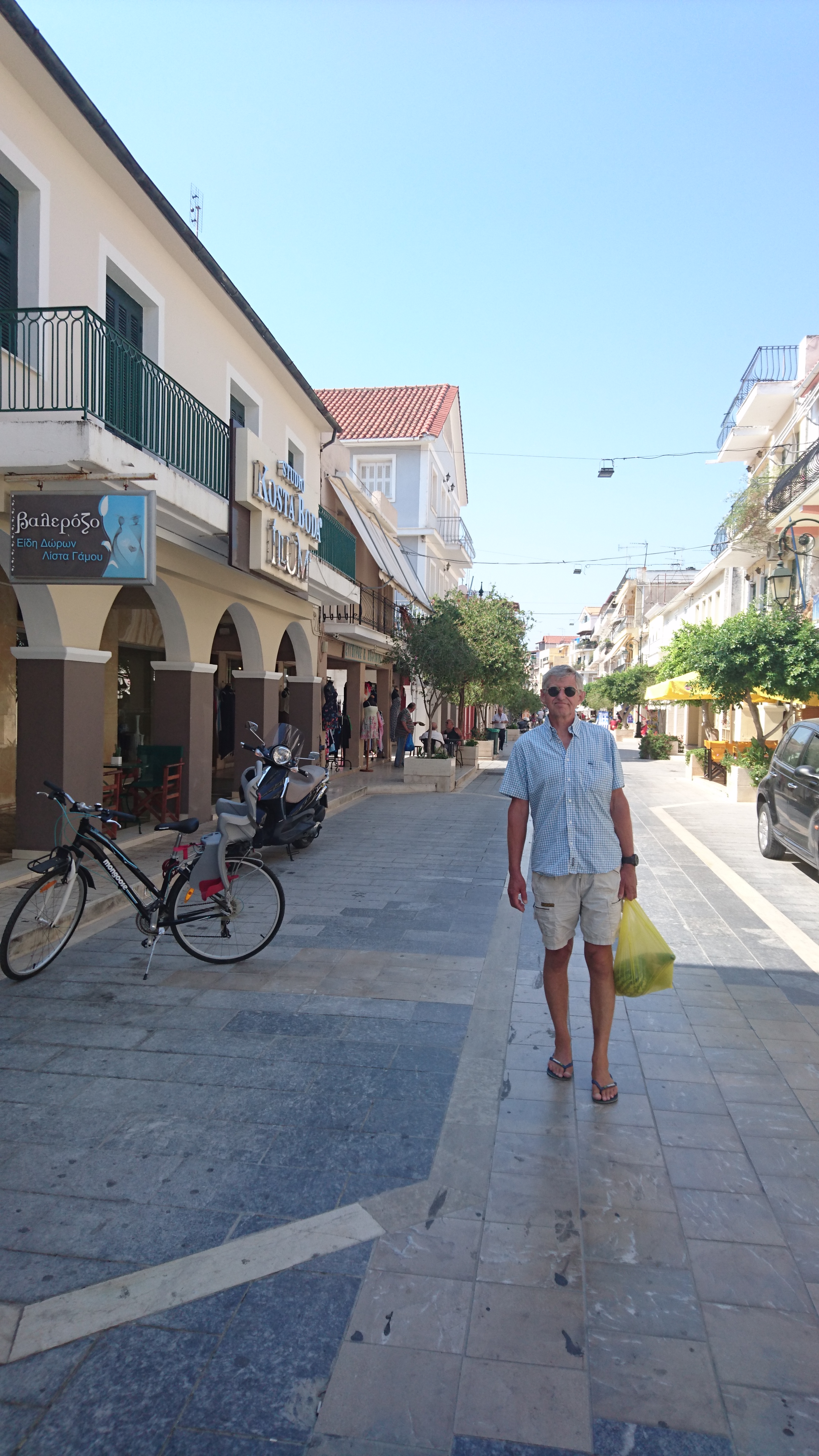Preveza is een leukere stad dan de meeste beschrijvingen je doen geloven. We liggen achter ons eigen anker met de spiegel naar de kade, voor de meest populaire bar. Er loopt een wandelboulevard van wel 2 kilometer voor de kade, waar iedereen flaneert, elkaar groet en een drankje doet. Vanaf 18:30 gaan de winkels weer open en we winkelen bij een grote supermarkt. In de stad ’s avonds nog wat gedronken en 2 paar schoenen gekocht voor 30 Euro samen.