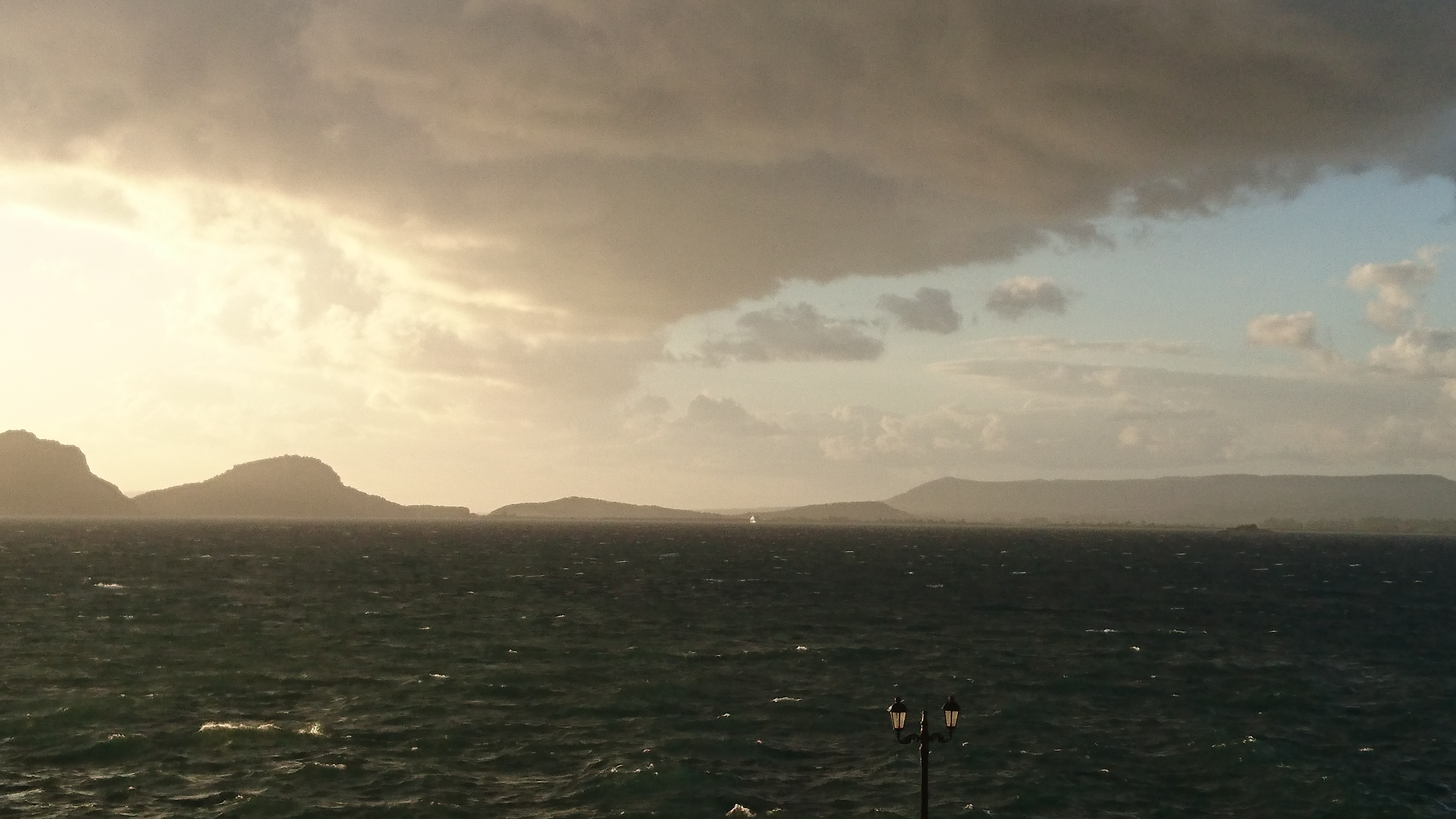 Op 17 en 18 juli waait het hard (20-25 knopen) en is zeilen niet echt leuk, want de kust ligt aan lagerwal. De luchten worden plotseling ook dreigender.