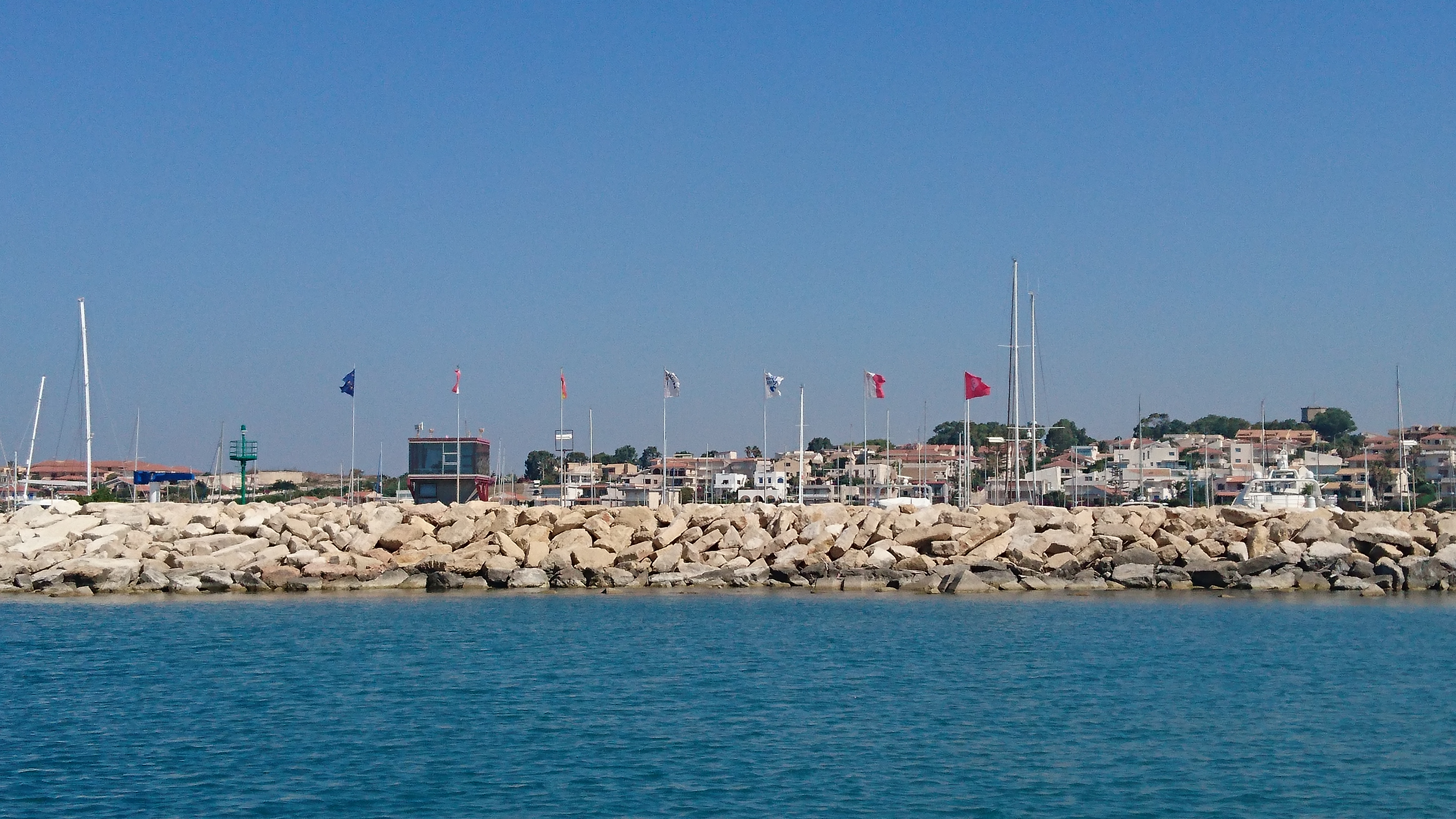 We varen om 09:40 de haven van Marina di Ragusa uit dicht langs de SB pier. De ingang is aardig verzand en aan BB (richting strand) is het minder diep. We meten minimaal 3,5m waar wij varen dus alles OK. Buiten zwaaien we naar de marinero die in zijn dinghy klaarligt om jachten op te vangen die het niet goed doen….