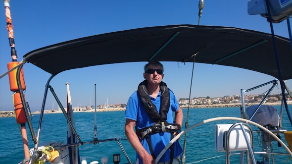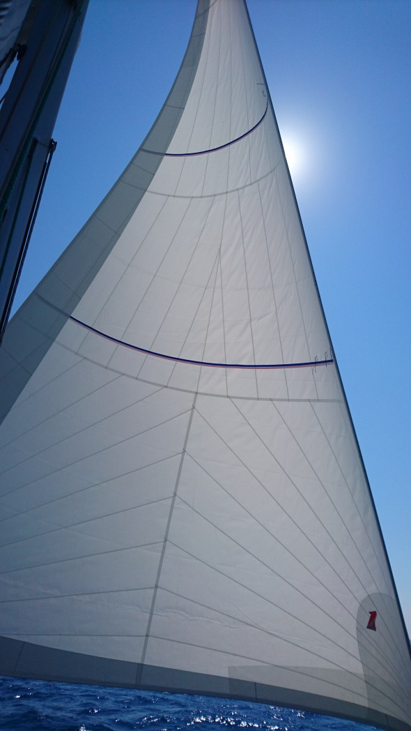We varen eerst even een half uur op de motor om te checken of alles goed werkt met de koeling. Gelukkig wel dus daarna zeilen we met ruime wind richting Capo Passero, de zuidoost-punt van Sicilië. 30 mijl heerlijk zeilen met de nieuwe genua 1 en vol grootzeil bij een wind die langzaam aantrekt van 12 naar 20 knopen.