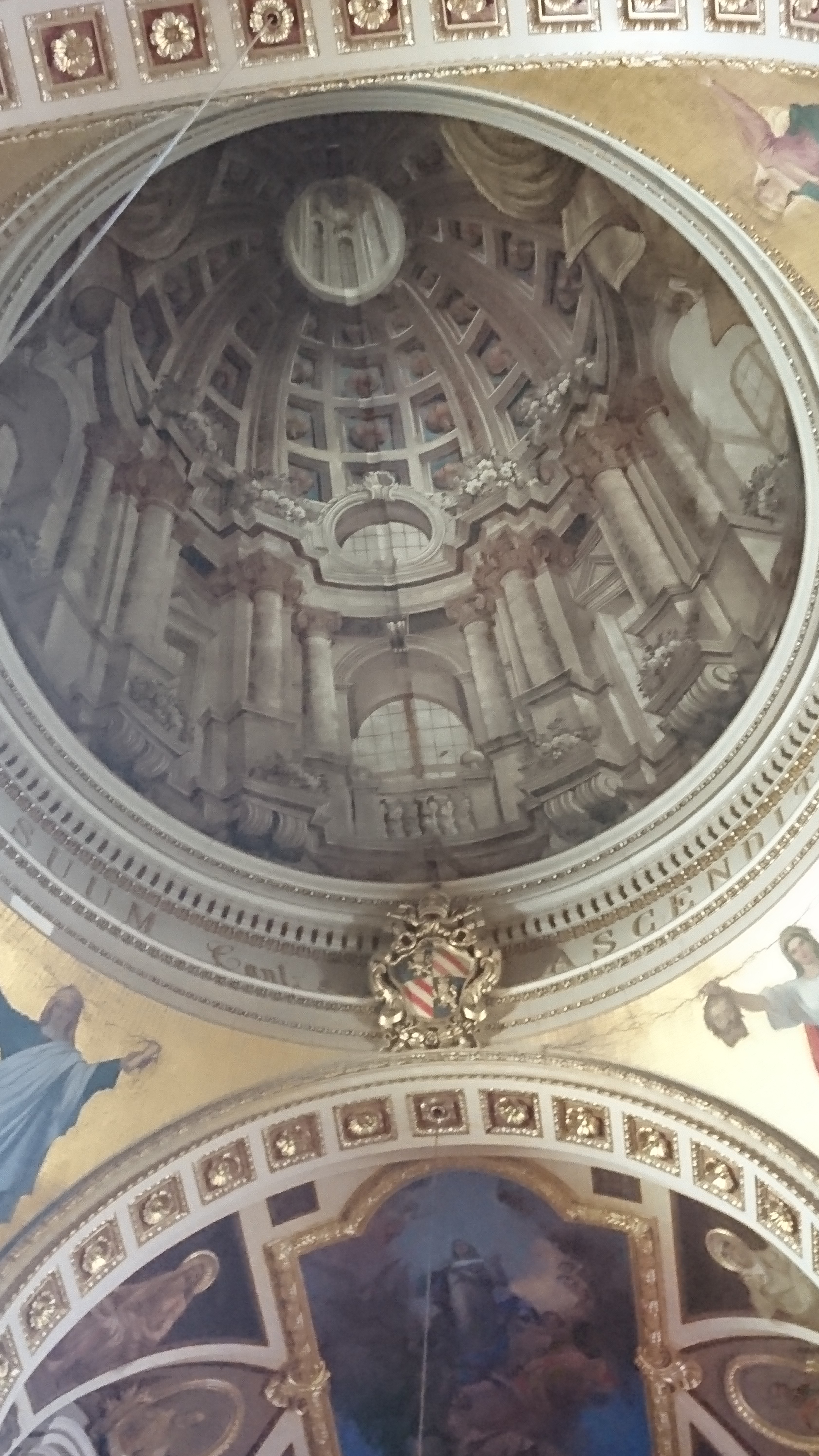 interieur van de kathedraal van Vittoria; de koepel is niet echt maar op een plat vlak geschilderd…..