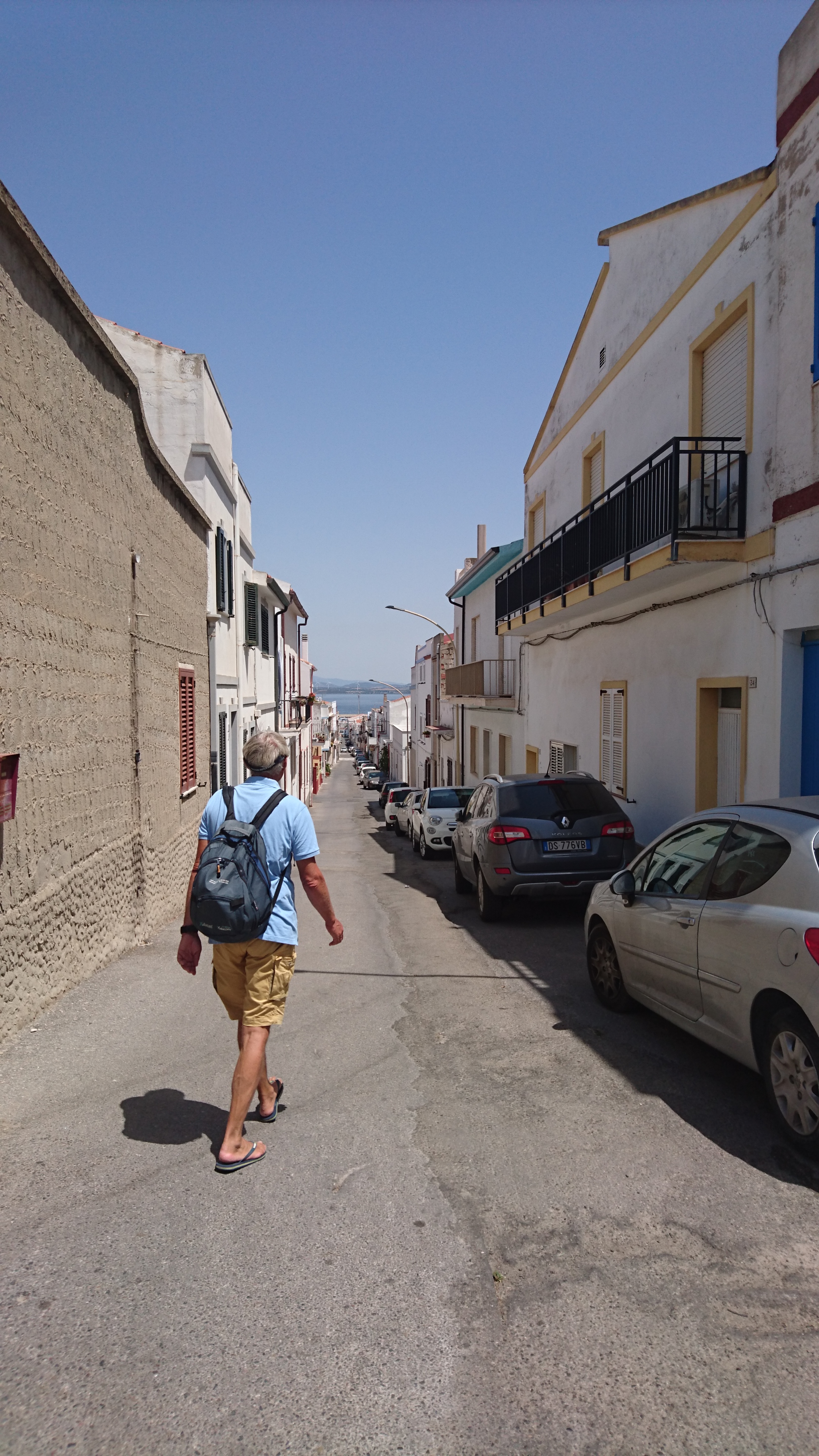 We wandelen door het dorp, zwemmen bij het strand net naast het dorp en we lunchen eenvoudig doch voedzaam met een pizza en een salade. Calasetta is een leuk plaatsje, heel anders dan Carloforte aan de overkant. Witte huizen, rechte straten en minder “stads” en welvarend.