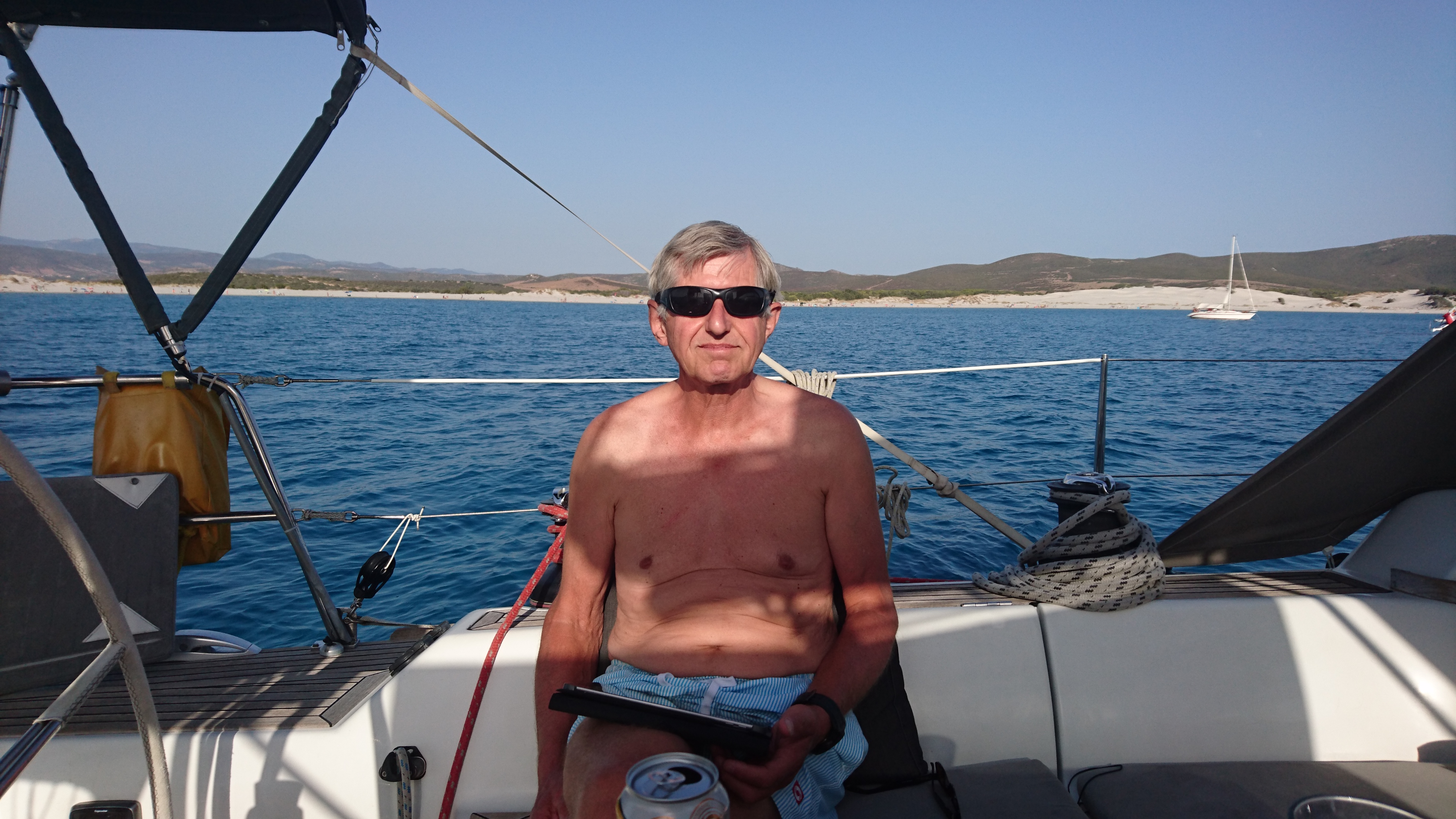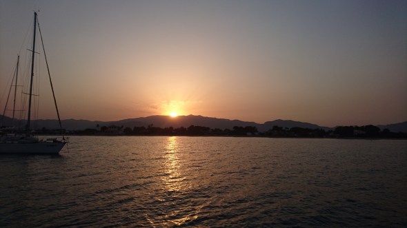 De volgende dag zeilden we heerlijk rustig een kruisrak van 20 mijl naar Capo Carbonara, inmiddels een vertrouwde ankerplek. We gingen met de dinghy naar de haven, bekeken de flamingo’s en dronken een lekkere Spritz Aperol (Milou en Frans tenminste) op het terras van de jachthaven. We barbecuen met de Cobb op het achterdek.